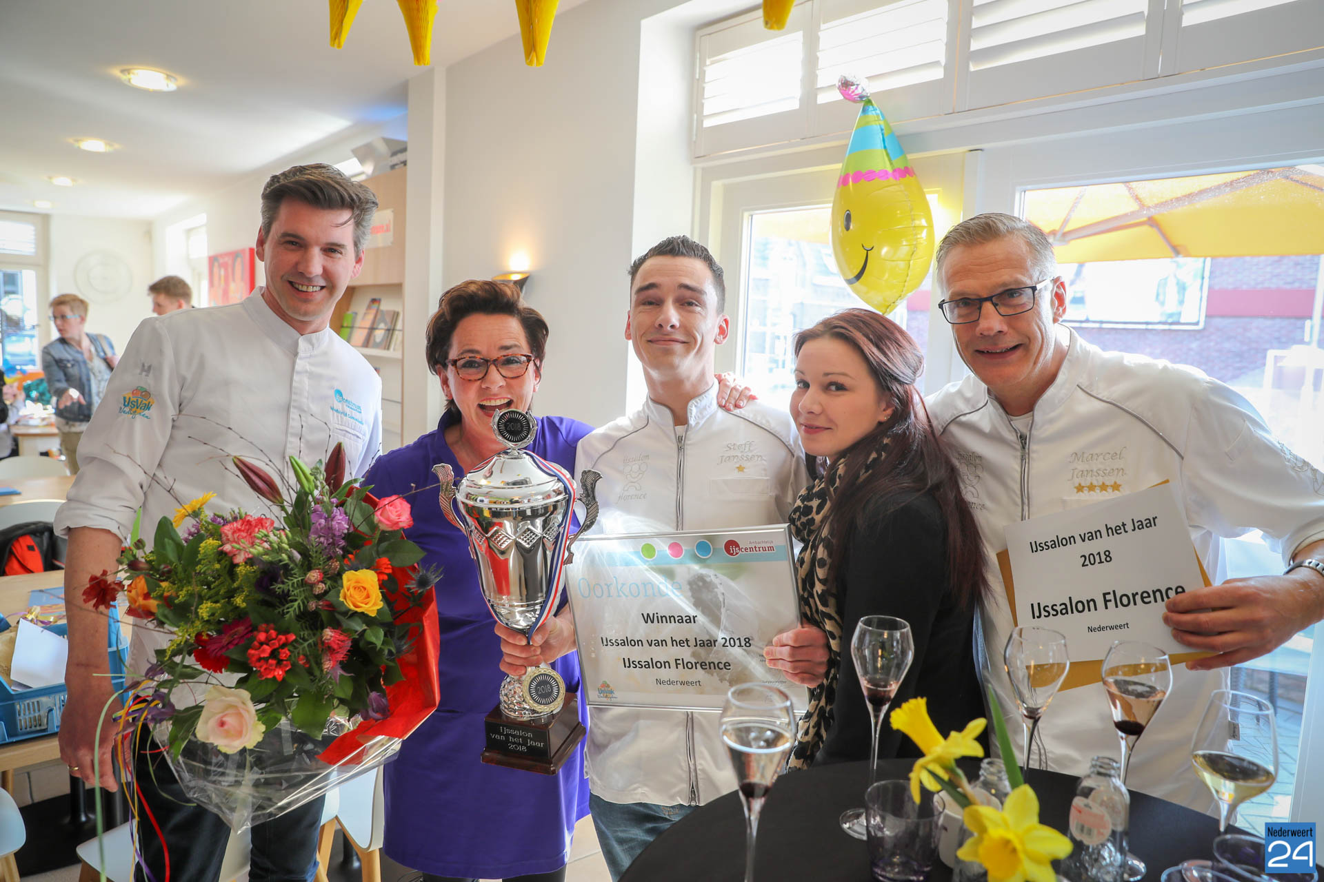 Zaterdagmiddag,precies om 16.15 uur werd bekend gemaakt dat IJssalon Florence de titel “IJssalon van het jaar 2018” mag dragen. Marjo, Marcel, hun zoon Steff en het hele team zijn super trots dat ze dit jaar weer ‘Beste IJssalon van Nederland’ zijn.