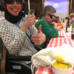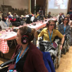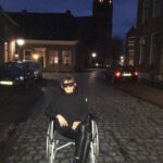 Na deze ervaringskamers kwam de echte uitdaging. Alle medewerkers trokken een levenslot en bijbehorend mankement. Met oorkappen, brillen waar je niet veel door ziet, gewichten om ledematen, mitella om de arm, rollators en rolstoelen toog de groep over de kinderkopjes in de avondschemer naar het nabijgelegen gemeenschapshuis om te gaan tafelen. Aan de grote tafel werd het al gauw stiller: “Er is niks aan. Het is heel vermoeiend”, “Ik hoor het alleen als iemand me bewust aanspreekt. De rest komt hard binnen als ruis. Ik focus me, maar het lukt niet. Frustrerend”, “Je wordt er onzeker van.” Ze relateren het aan hun cliënten. “Ik kan me best voorstellen dat iemand op tijd naar bed wil. Of het te druk vindt bij een grote activiteit.” Voor de medewerkers volgde nog een avondprogramma, de nacht in hun kamer, en de tweede dag waarop ze hun ervaringen delen en kijken hoe ze het in de praktijk kunnen brengen. Om nog meer handvaten te krijgen volgt binnenkort ook nog een clinic waarvoor de medewerkers hun collega’s en teamleiders kunnen uitnodigen. “Dit is een scholing die me bij blijft. Nou ja, zolang als mijn geheugen meewerkt dan.”