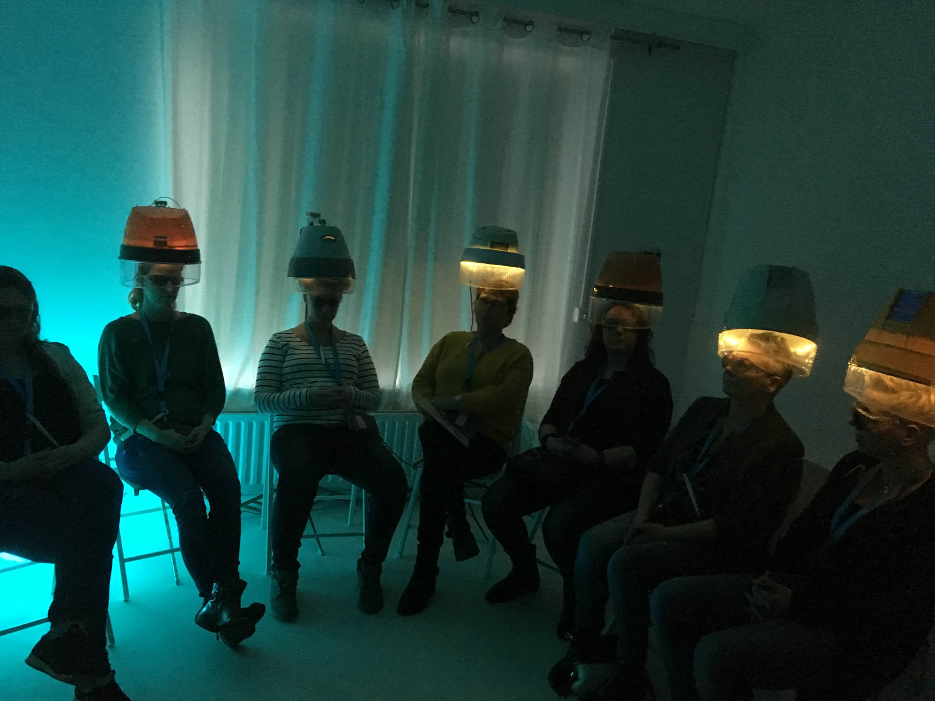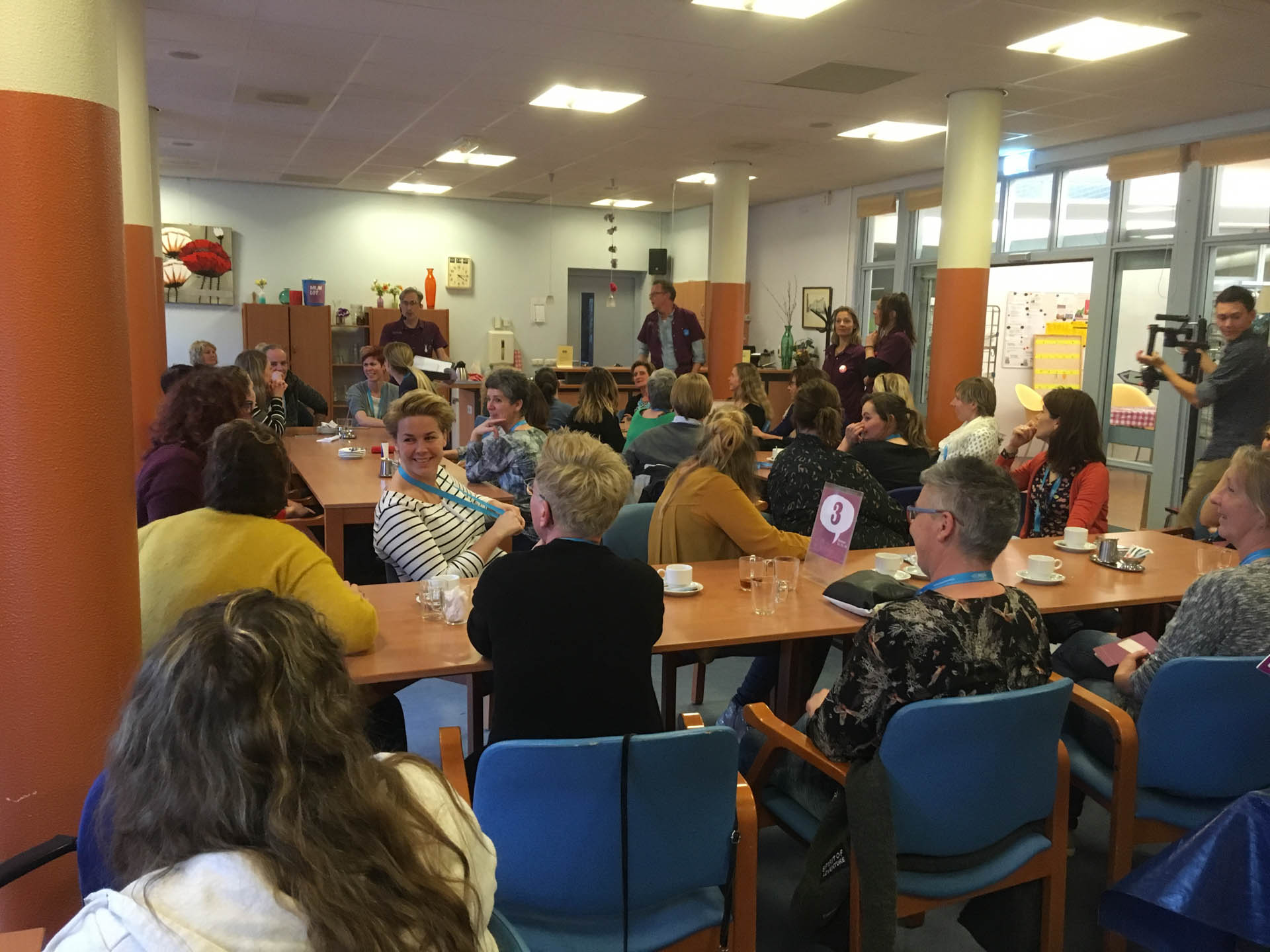 In groepjes werd de weg vervolgd naar de ervaringskamers. Hier konden de deelnemers ervaren hoe het voelt om verstijfd te zijn, doormiddel van zware gewichten aan je lijf. Ook kon je onder droogkappen ongefilterd geluid horen als nabootsing van dementie. Ook werd de vraag gesteld: wat jij zou meenemen als je moest verhuizen naar een zorgcentrum? Voor veel medewerkers waren de kamers confronterend. “Ik zou mijn herinneringen mee willen nemen, maar heb ik die dan nog allemaal?” “Ik wil geen spullen meenemen, maar mensen”, “Ik wil naar buiten kunnen”. Ook de ongefilterde geluiden maakten veel los: “Ik ben er wel, maar het leven gaat door zonder mij.”