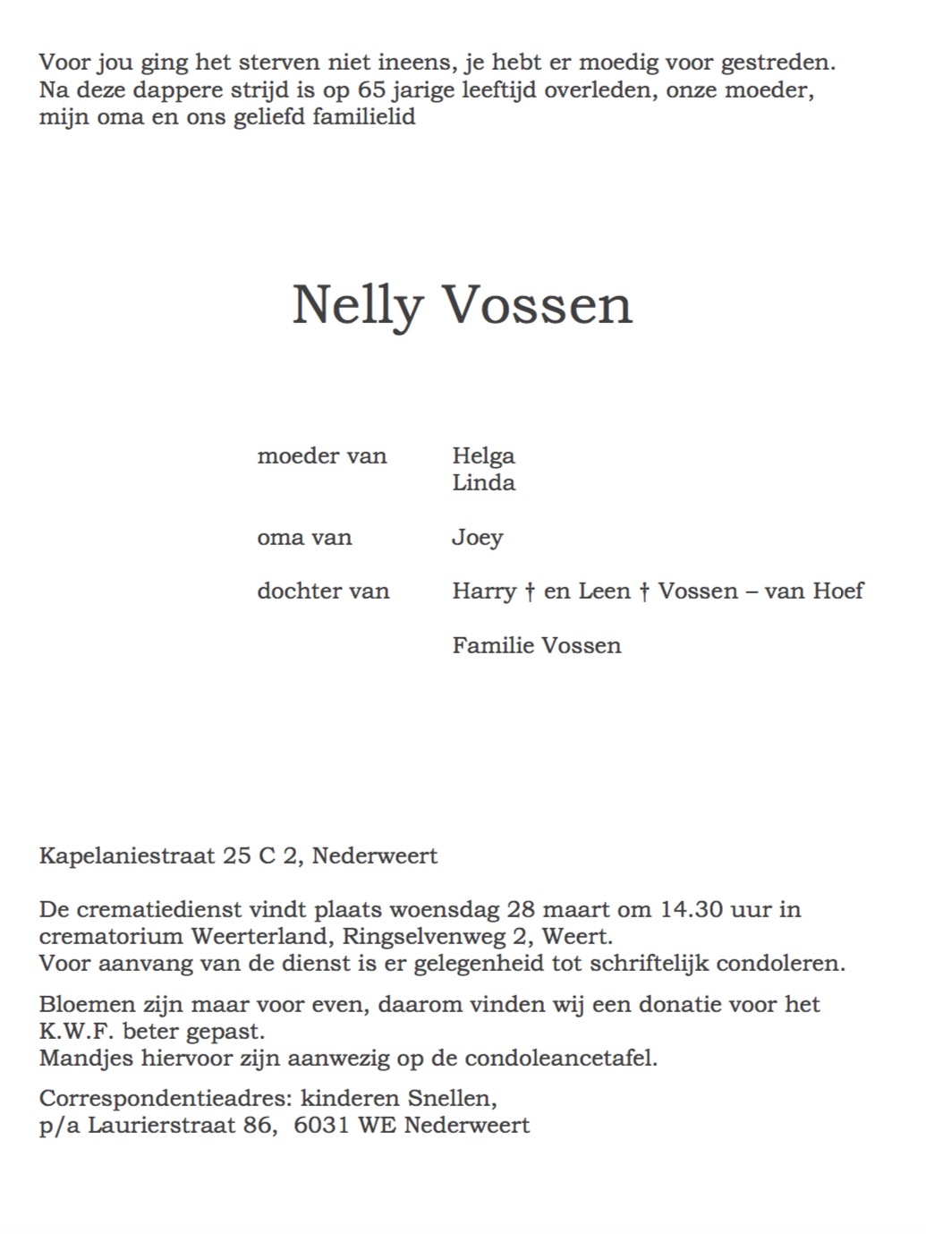Helga en Linda gecondoleerd met het verlies van jullie moeder.