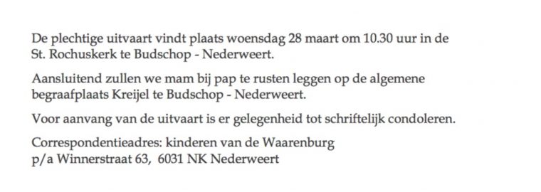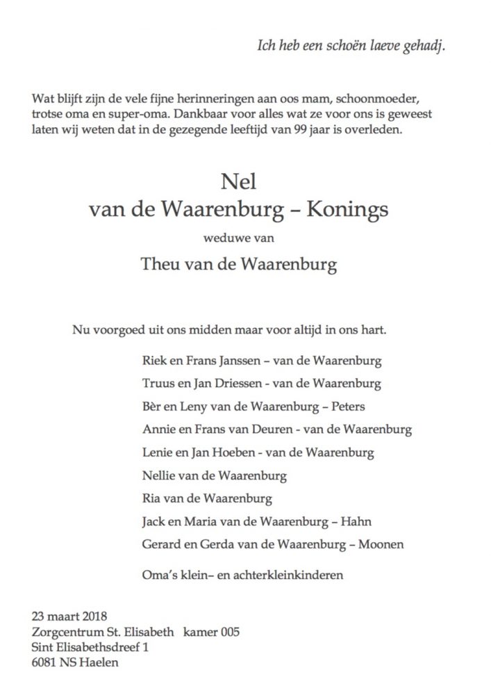 Overlijdensbericht: Nel van de Waarenburg – Konings