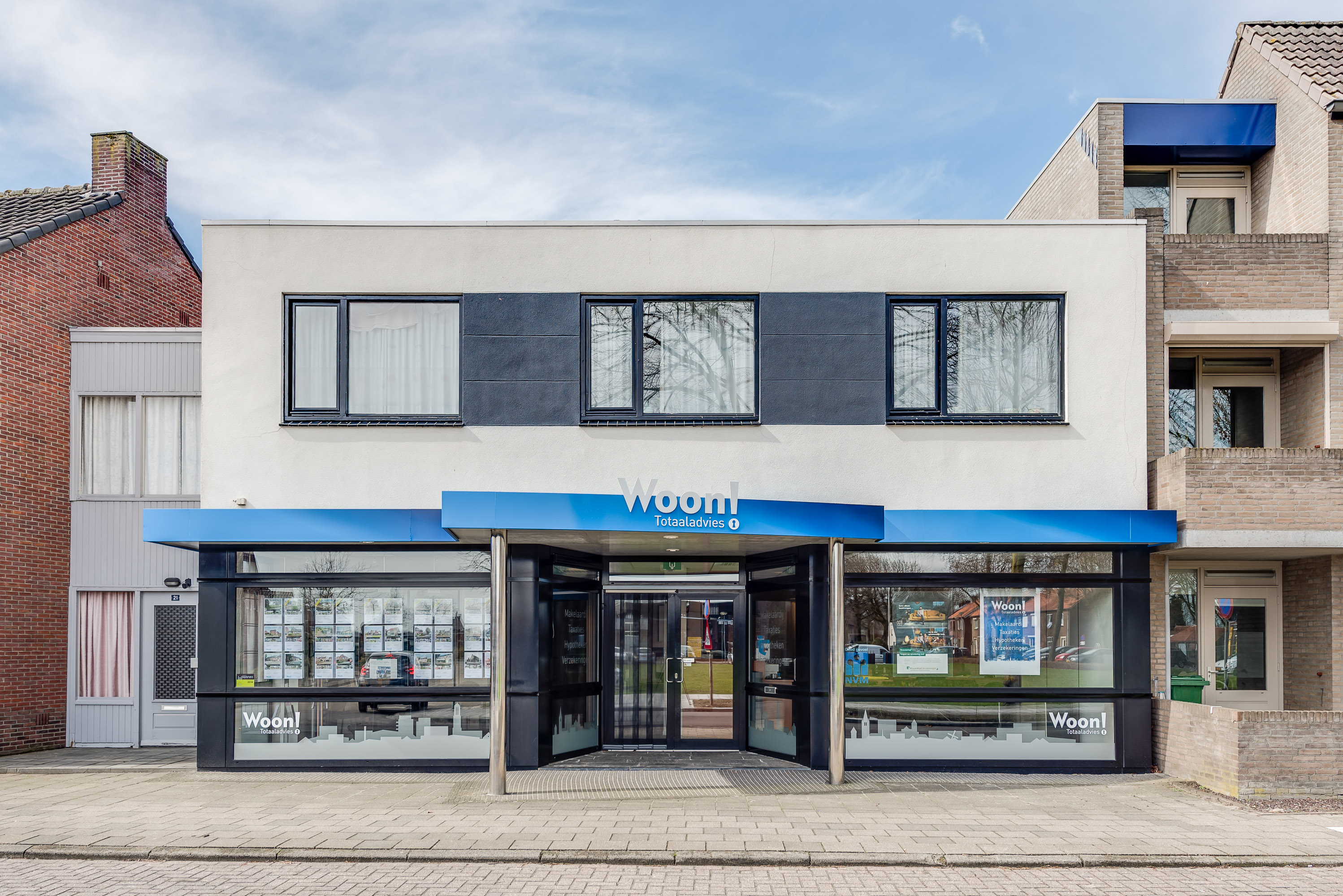 In de nieuwe huisstijl maakt de kleur geel plaats voor heldere blauwtinten en in het logo is meteen duidelijk in welke regio ze actief zijn, door middel van de skyline met daarin herkenbare gebouwen uit Nederweert en Weert. Met de nieuwe naam wil men nog meer benadrukken dat u op het gebied van verkopen, kopen, financieren en verzekeren van uw woning op het juiste adres bent.