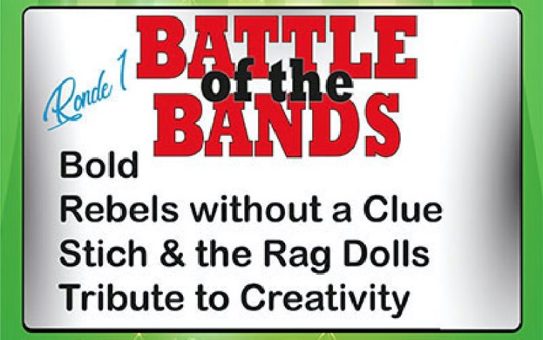 Zaterdag 7 april is de start van de 1e ronde van Battle of the Bands met de bands: Bold | Rebels Without a Clue | Stich & the Ragg Dolls | Tribute to Creativity