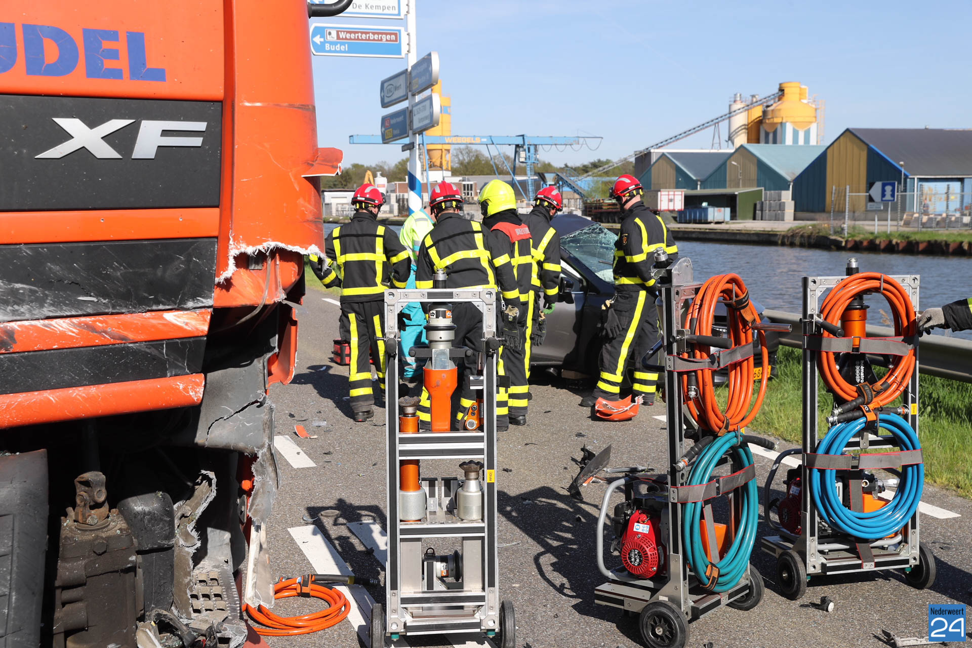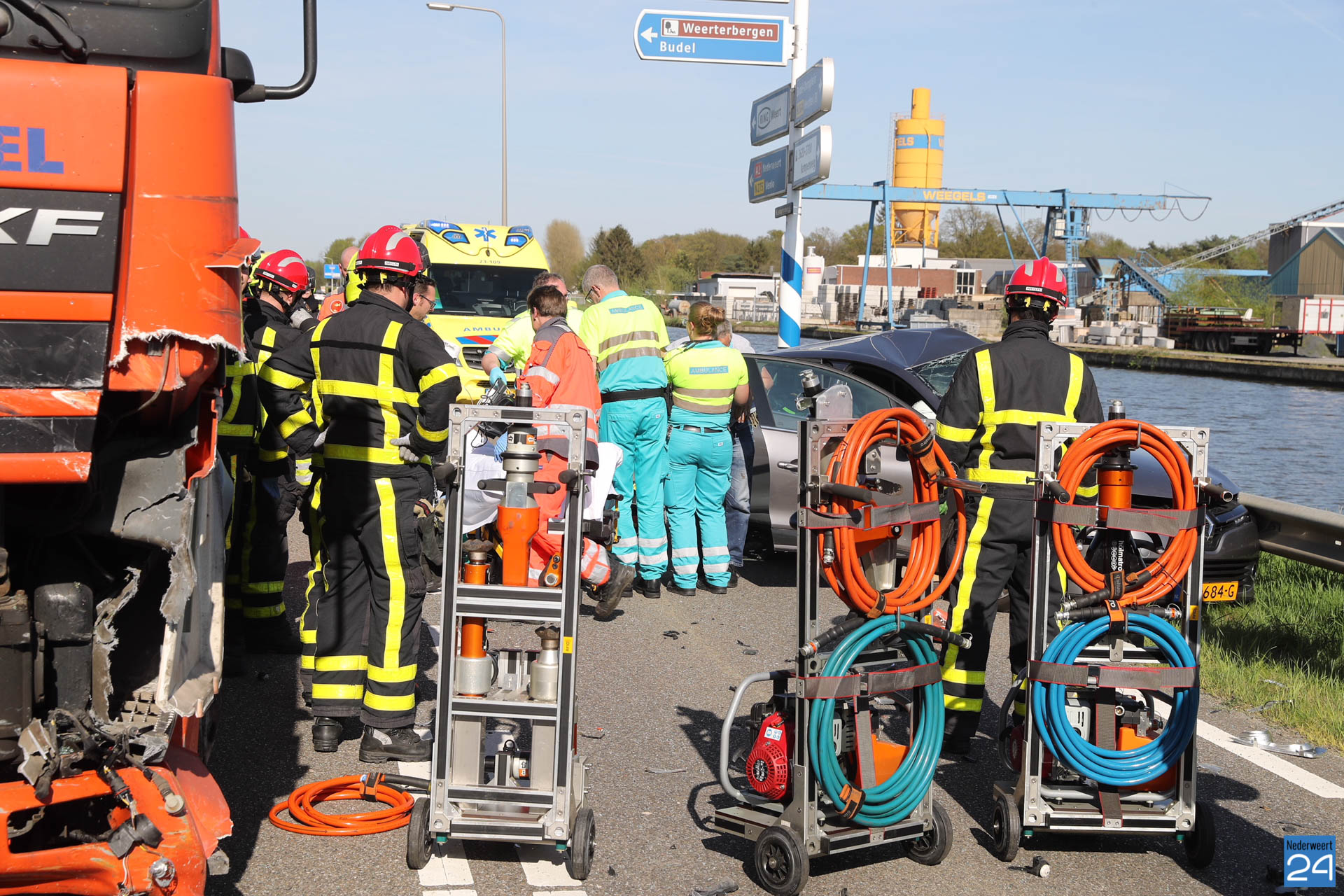 Donderdagmiddag is een personenauto in botsing gekomen met een vrachtwagen op de Kempenweg in Weert. Hierbij raakte twee personen ernstig gewond.