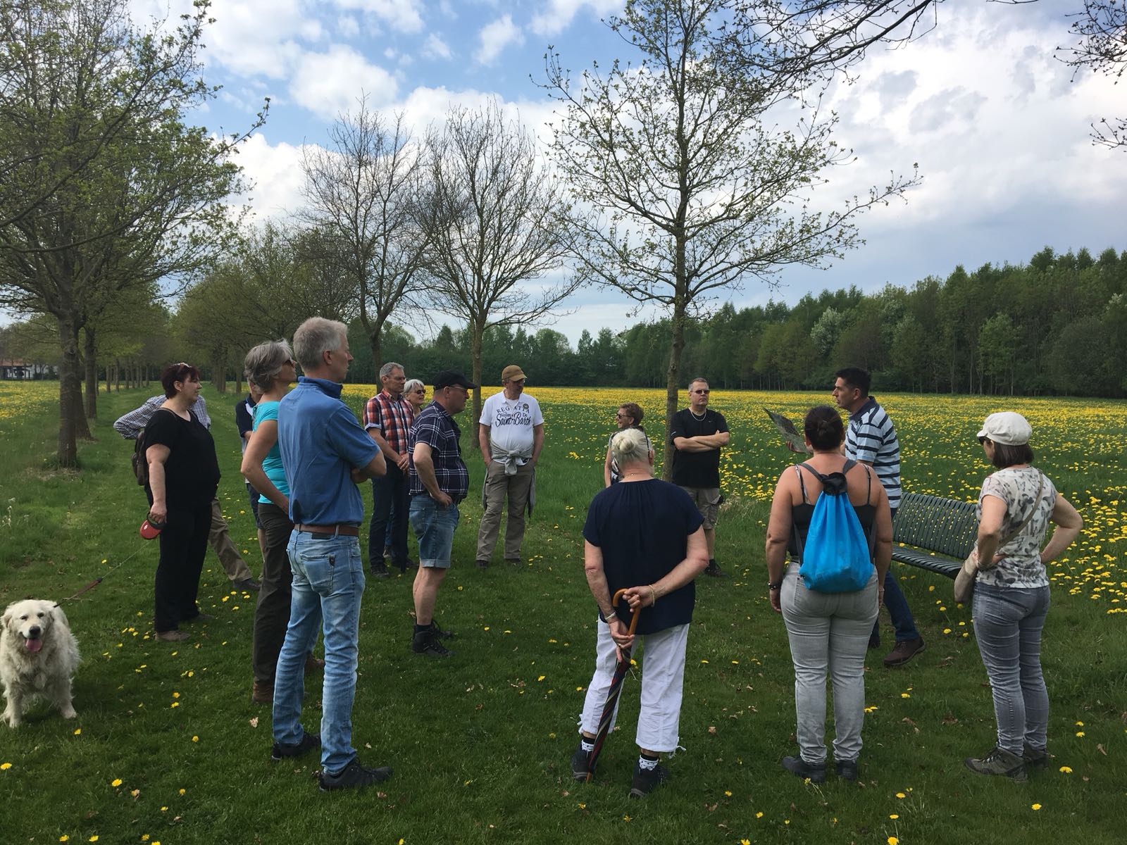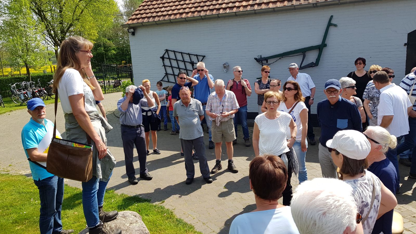 Meer dan 100 belangstellenden waren zondagmiddag afgekomen op de nieuwe erfgoedtocht van de werkgroep van de Dorpsraad Stramproy. Tijdens de wandeling werden een hele reeks nagenoeg vergeten plekken aan de rand van het dorp Rooj, Molenbeersel en Haler aangedaan. Bijzondere plaatsen die in het verleden van grote betekenis waren voor de gemeenschap van het grensdorp zoals een vluchtschans, de galg, het ´Meulendaal´ en het Blokven waar het vlas voor het linnen werd geroot. Maar ook ´Donnersweijer: een voormalige visvijver van de burgemeester, een aantal jaren geleden ontdekt door de bever.