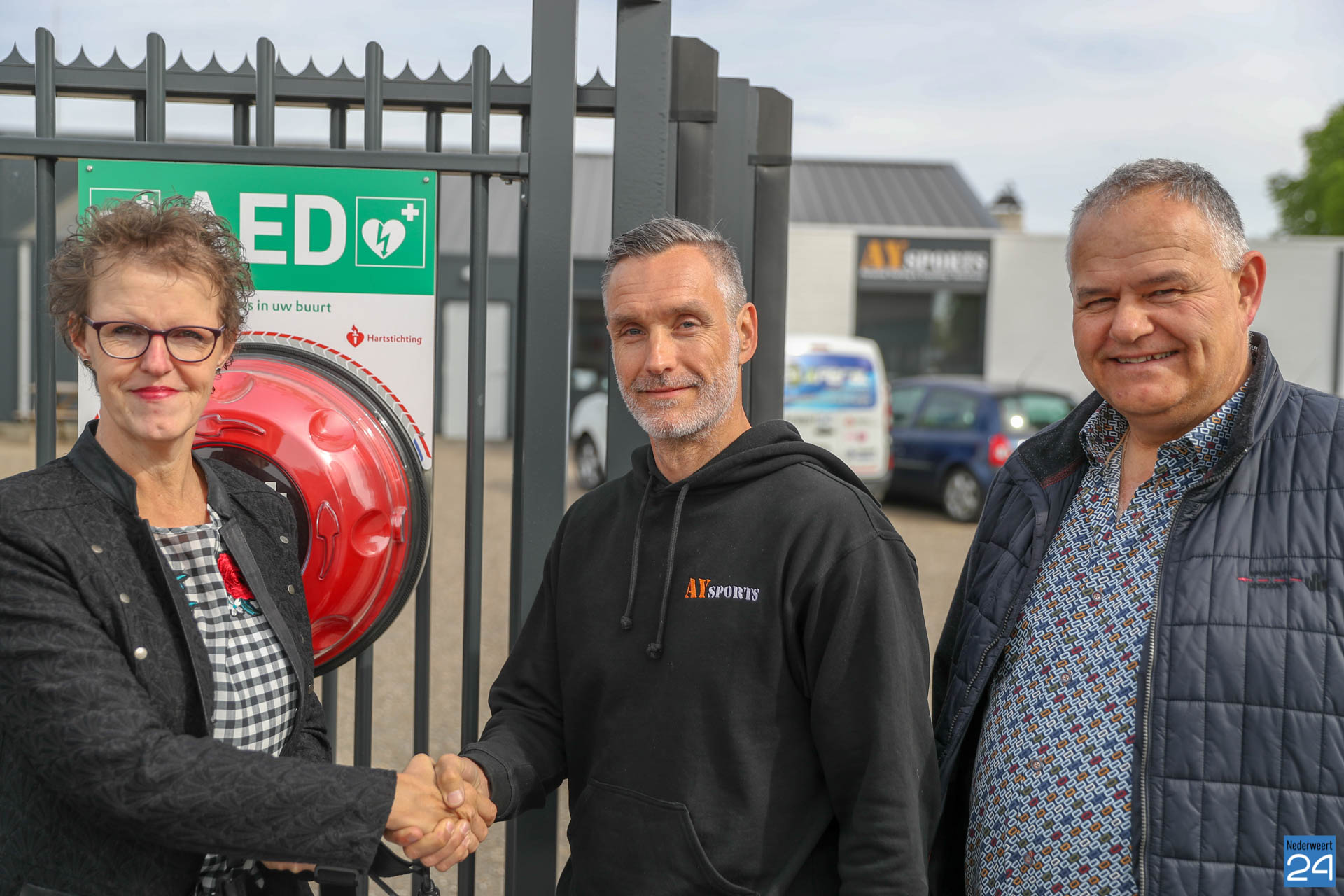 Er hangt een AED aan de poort van E-power aan de Gebbelsweg in Ospel. Eric Jacobs van E-power werd bedankt door Antoine Hekers en Annelies Terium van de stichting ‘Hartslag voor Nederweert’ voor dit geweldig initiatief. De stichting zal zorgen voor onderhoud en service wanneer de AED ingezet wordt bij een reanimatie. De kast werd geschonken door ‘de Hartstichting’ in samenwerking met ‘de Vriendenloterij’