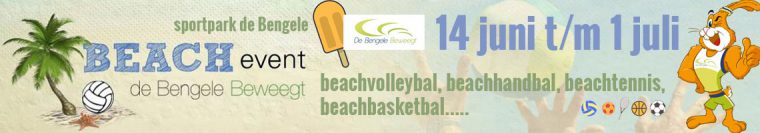 Het Beach Event wordt georganiseerd door stichting De Bengele Beweegt. Binnen deze stichting vindt een samenwerking plaats tussen diverse sportverenigingen, kindereducatie, zorg en welzijn. Sámen wordt ernaar gestreefd om van De Bengele dé ontmoetingsplek van Nederweert te maken met een vernieuwend en breed sport- en cultureel aanbod van en voor iedereen! Een open en uitnodigende omgeving waar veel verenigingen en maatschappelijke partners nauw samenwerken. Kijk voor meer informatie op de website: www.debengelebeweegt.nl. Hierop is binnenkort ook het volledige programma van het Beach Event terug te vinden.