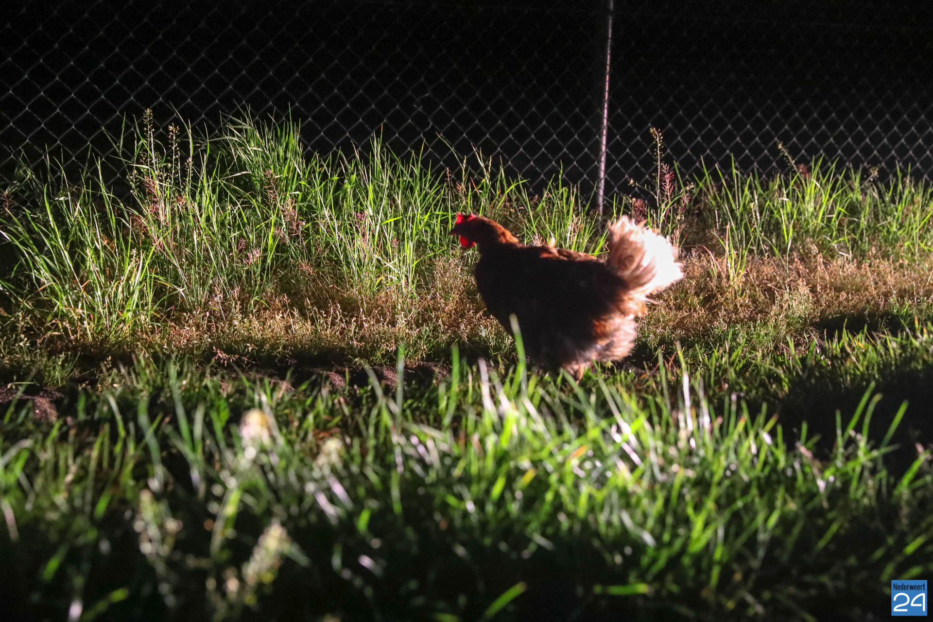 Hoewel het om vrije uitloopkippen gaat, konden de dieren geen kant op. De hokken gaan ’s nachts dicht om te voorkomen dat bijvoorbeeld vossen naar binnen sluipen. Slechts een enkele kip liep verdwaasd door de donkere omgeving van de stallen terwijl de brandweer met bluswerk bezig was.
