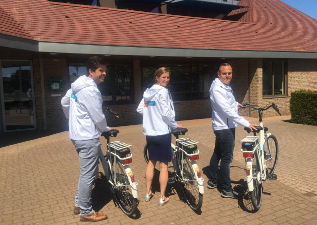 Foto: Pim, Iris en Harold (vlnr) staan klaar om de kernen in te gaan. Dat doen ze regelmatig op de fiets – gemeente Nederweert.