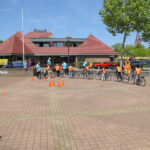 Voor de start controleren vrijwilligers van Veilig Verkeer Nederland afdeling Nederweert de fietsen van de kinderen en moeten ze een kleine fietsproef doen waarbij ze moeten slalommen, bochten maken en een remproef doen.