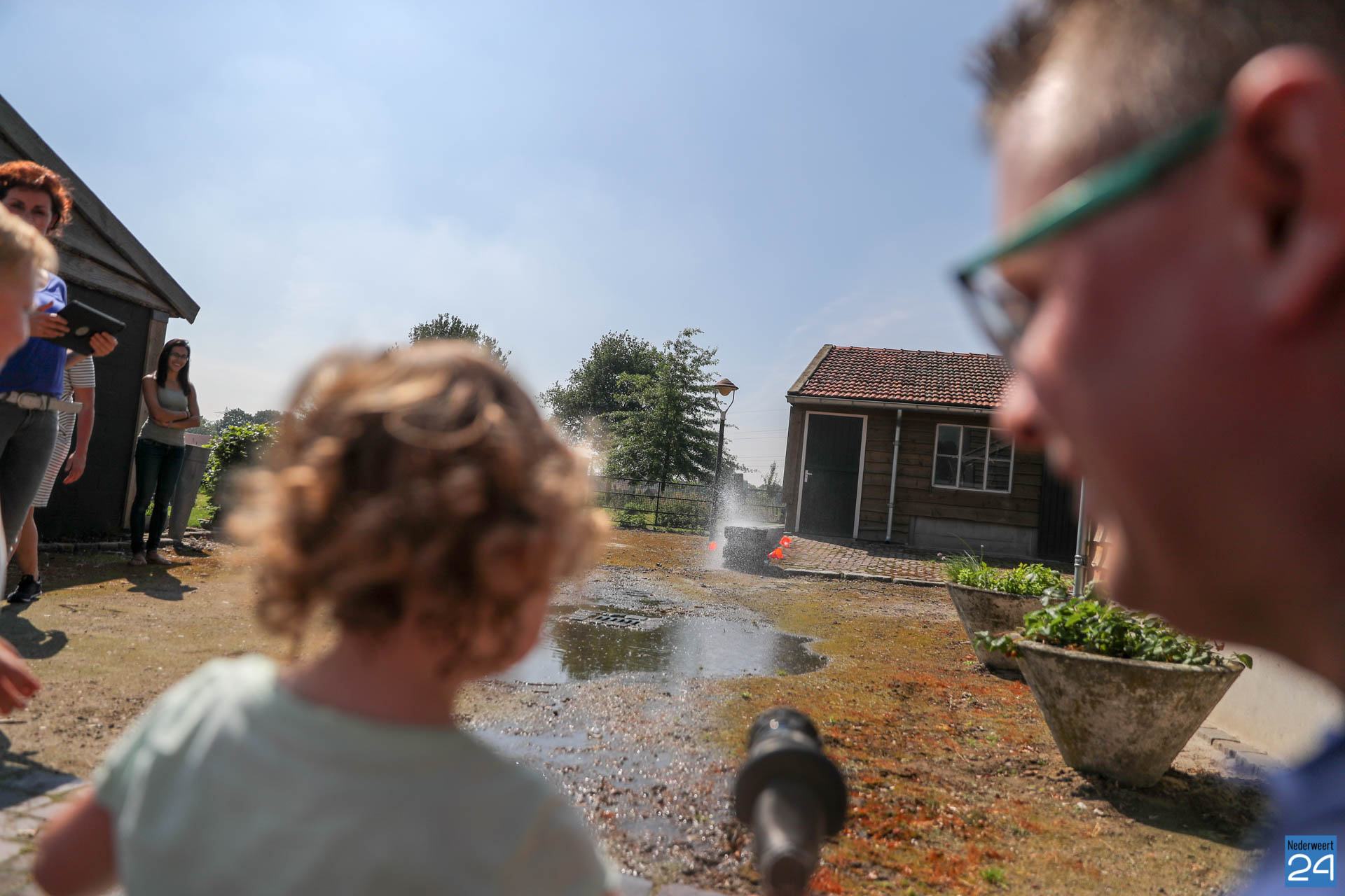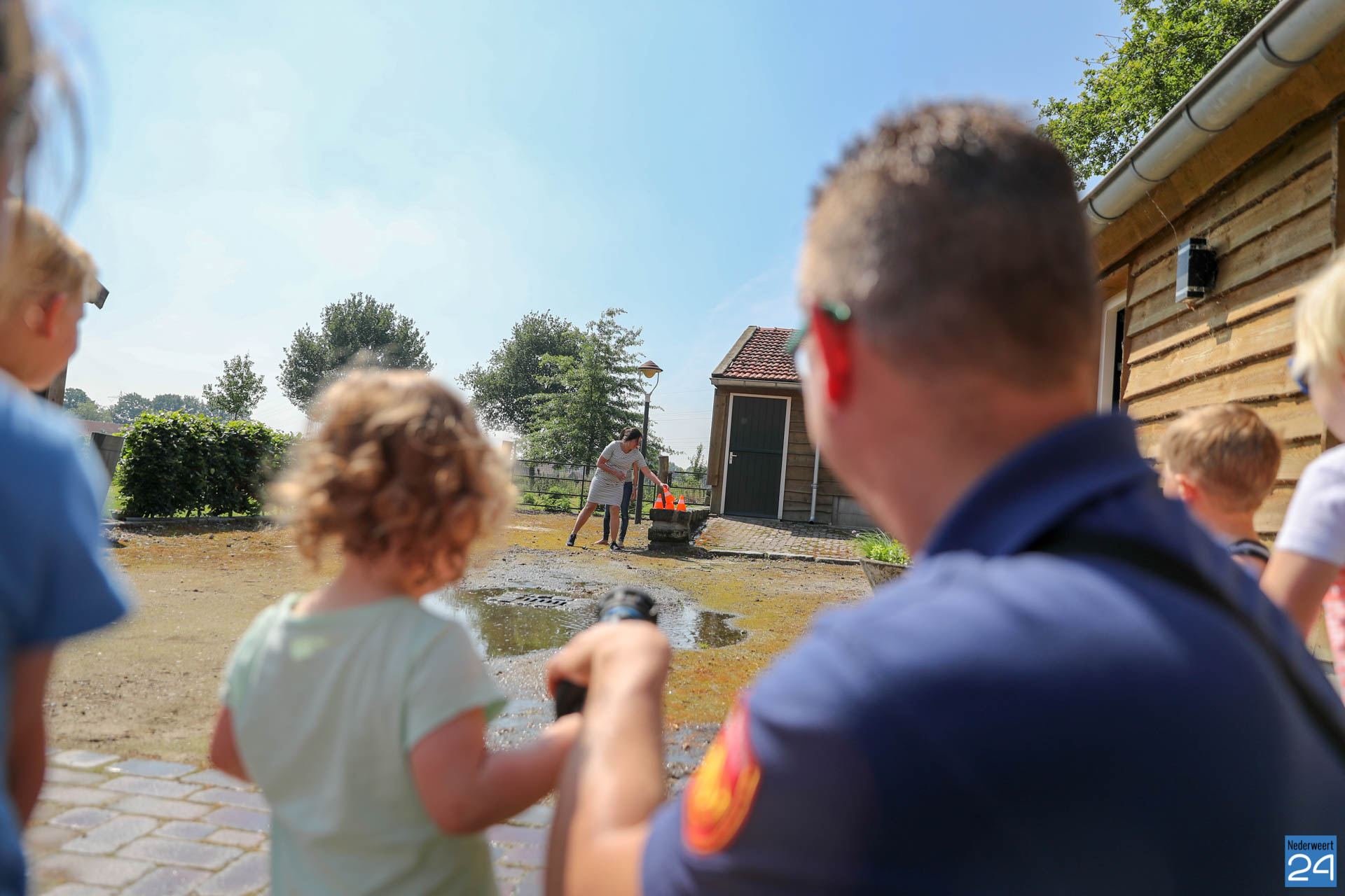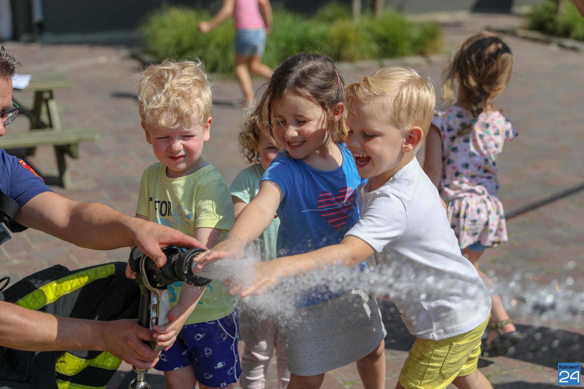 Samen wachten bij het raam… De kinderen keken hun oogjes uit toen de brandweerwagen de oprit op kwam rijden met de zwaailichten aan. De kinderen mochten allemaal in de brandweerwagen zitten en met de brandslang spuiten. Dit was een hele leuke start van de eerste week.