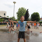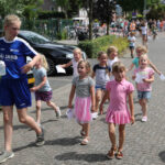 De sponsorloop werd geopend door een spetterende warming up van de kinderen van groep 8. Na deze warming up stonden alle kinderen de trappelen om zo veel mogelijk rondjes te gaan rennen. Sommige kinderen werden per rondje gesponsord, andere kinderen hebben vooraf een vast bedrag gesponsord gekregen. Hiervoor dank aan alle sponsoren. Vanwege de hitte renden de kinderen halverwege de route lekker onder de sproeier door en hebben zij extra water gedronken.