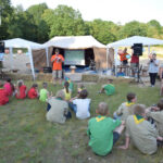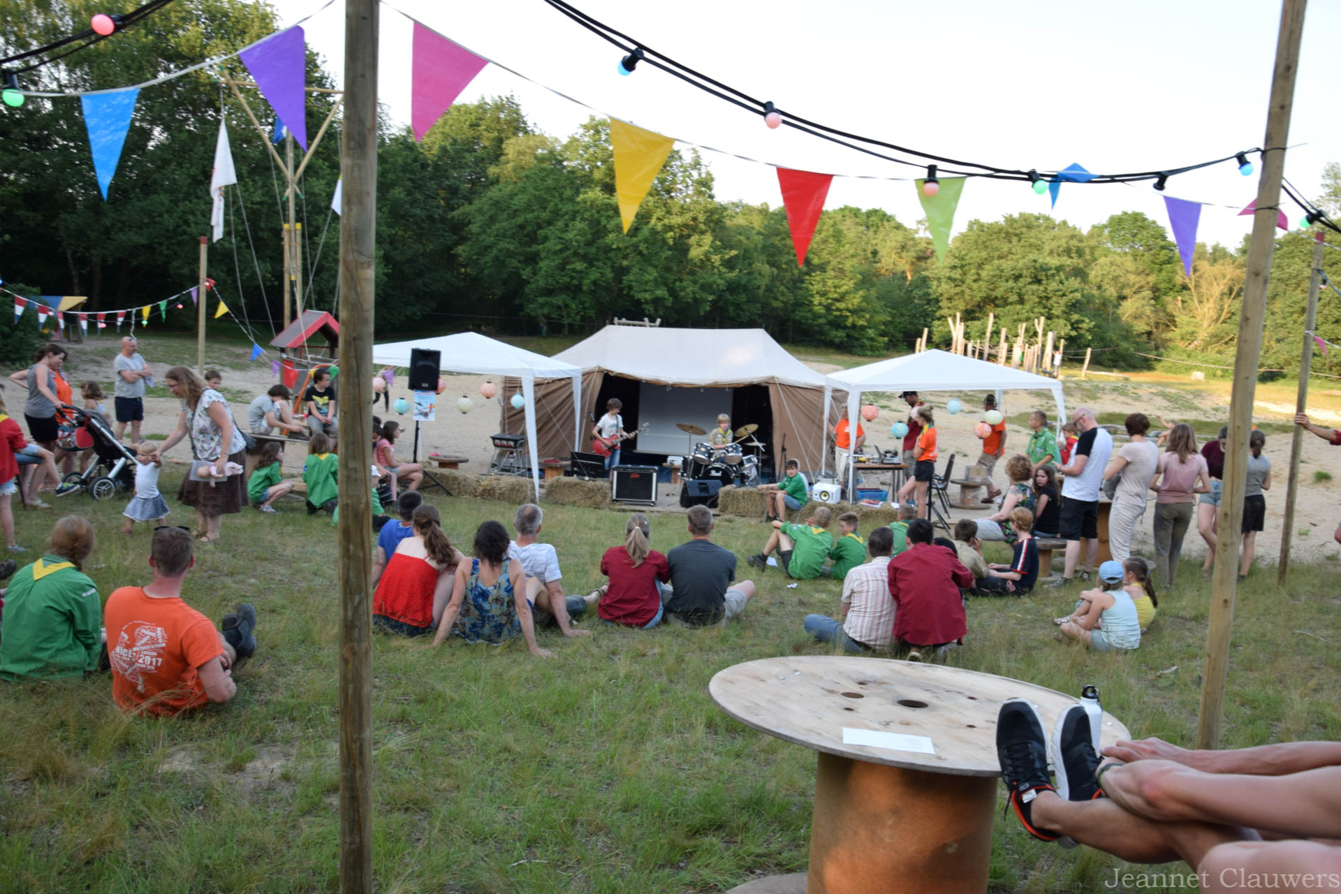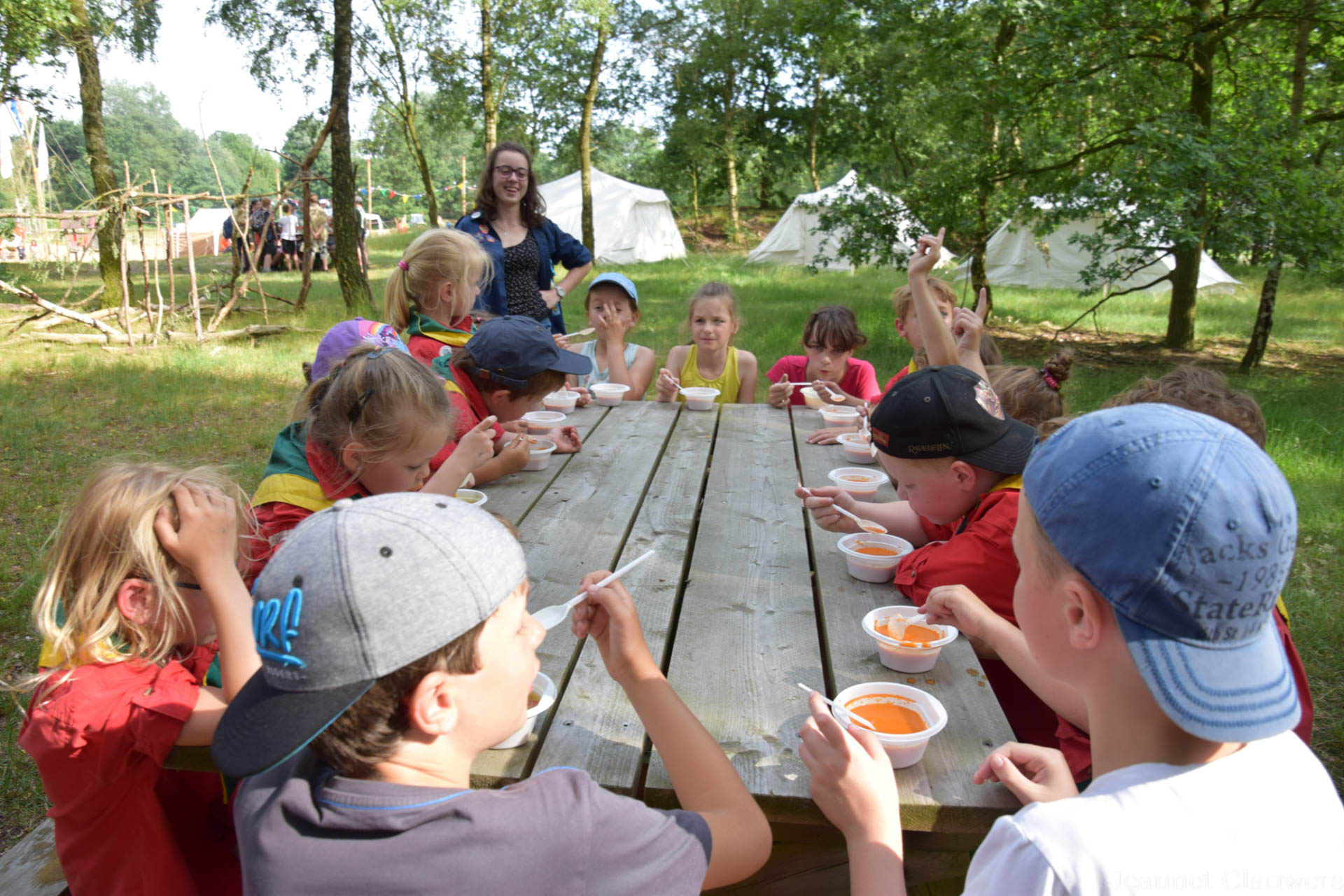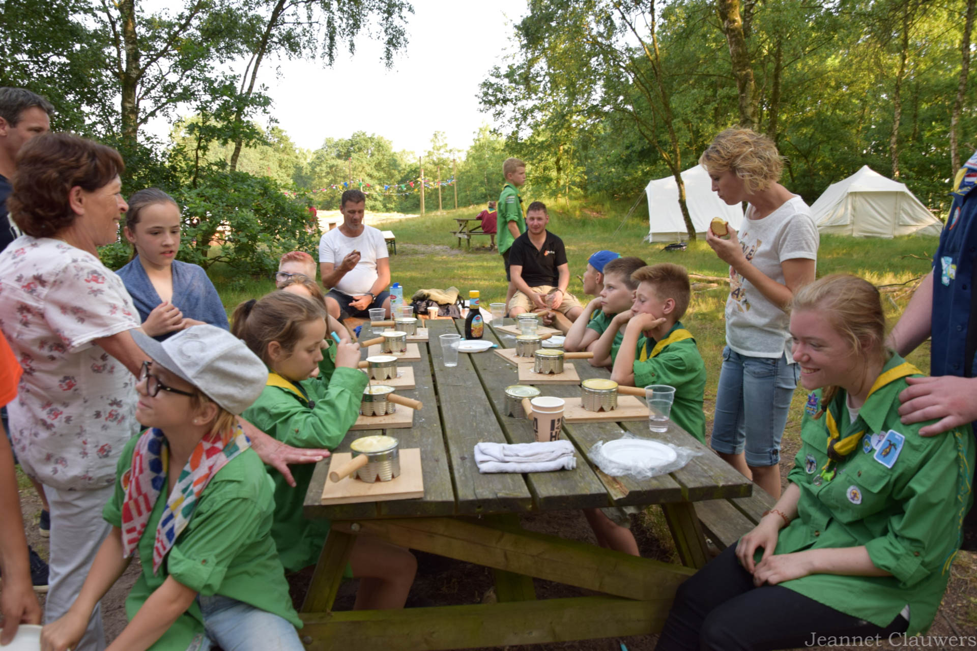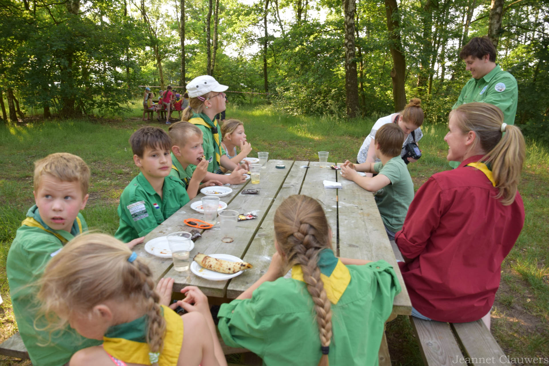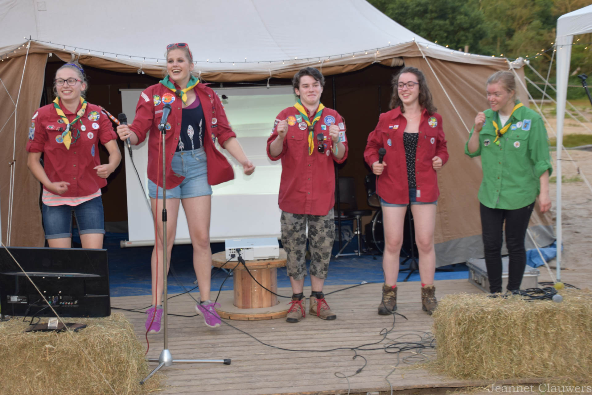 Door de hele Houtsberg waren spellen uitgezet en werden er pizza-ovens gebouwd. Na al dit werk was het lekker eten van de pizza’s, door de jongste speltakken zelf gemaakte pannekoekjes en de soep. Het avondprogramma bestond onder meer uit karaoke en een aantal geweldige optredens van hele muzikale Scouts. Er zit talent bij Scouting en het was net Bospop in het klein. Nadat de jongste groepen naar huis waren kon men nog genieten van gitaarmuziek bij het kampvuur. Er werd gezellig meegezongen op de overbekende scoutingliedjes en andere mooie nummers. Men kon ook nog tosti’s en gepofte aardappelen in het kampvuur maken.