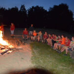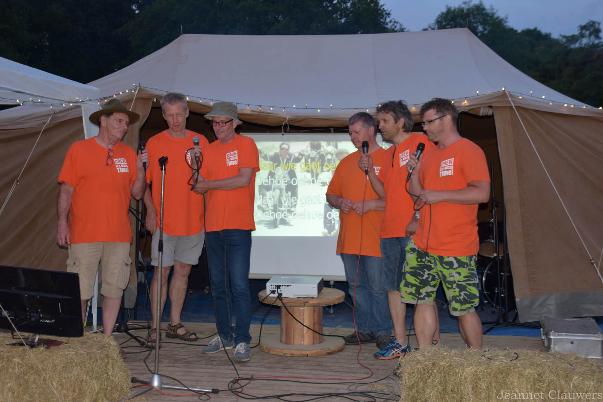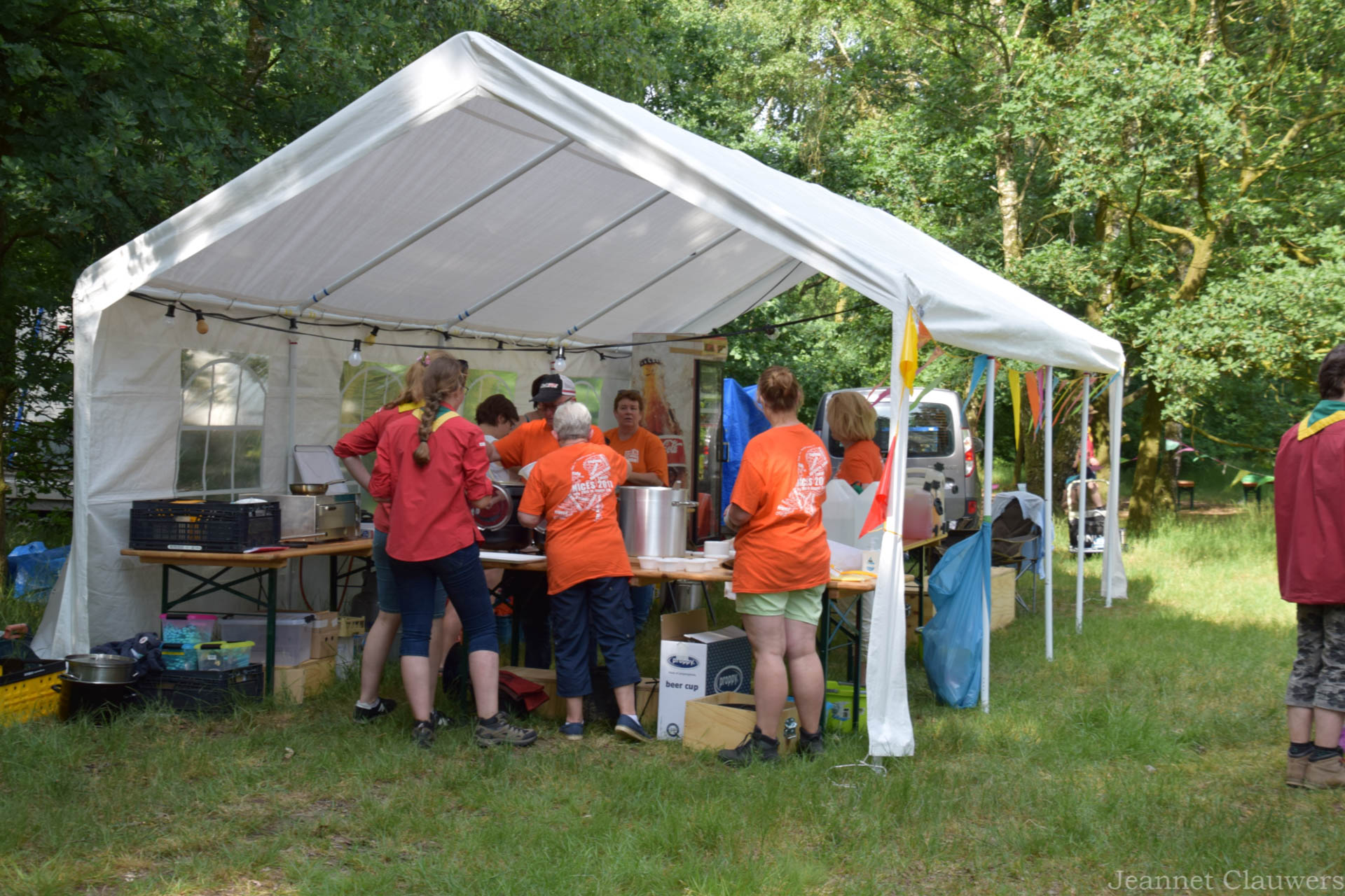 Voor een keer en bij hoge uitzondering mocht er worden overnacht in tenten op de Houtsberg. De kinderen genoten, de oudere leiding haalden herinneringen op aan vroegere kampen, de eerdere blokhutten enz. waaronder het Patronaat en de kelder van de Pinnenhof.