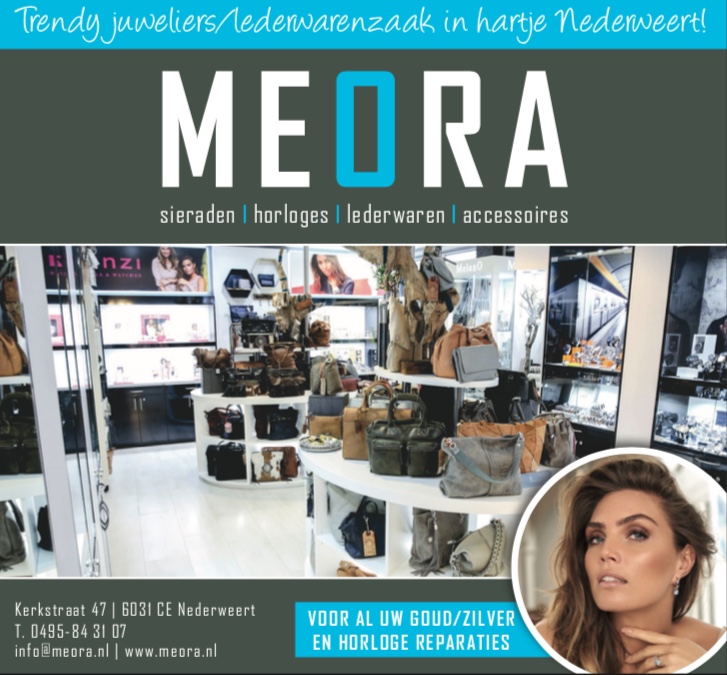 Meora Trendstore Nederweert is inmiddels uitgegroeid tot een winkel waar iets te vinden is voor ieder zijn smaak en portemonnee. Van trendy tot klassiek, van gouden en zilveren sieraden tot bijoux, van trendy tassen tot school/werktassen en van dames/heren tot kids sieraden en horloges. De medewerksters hebben een ruimschootse ervaring in de juweliersbranche en helpen en adviseren je graag. Het team bestaat uit Marja, Inge, Heidi en Josette.