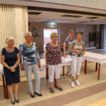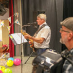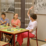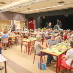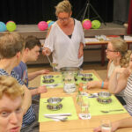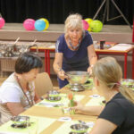Op dinsdag 22 mei werd al gestart met de voorbereidingen voor deze activiteit. Toen zijn er in groepjes van vier personen foto’s gemaakt van gedekte tafels, de keuken, de koks, het uitgeserveerde eten en van elkaar. En van deze foto’s zijn op dinsdag 5 juni foodcollages gemaakt. Eerst heerlijk samen dineren en daarna knippen en plakken! En samen genieten van de muzikale omlijsting van de accordeonist Fer Hendrix.