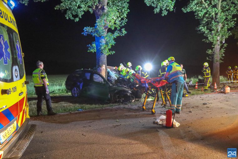 De hulpdiensten werden massaal gealarmeerd voor een technische bevrijding. De boom, waar de auto tegenaan was gereden, stond midden in de auto waardoor de brandweer veel moeite had om het slachtoffer uit zijn benarde positie te bevrijden.