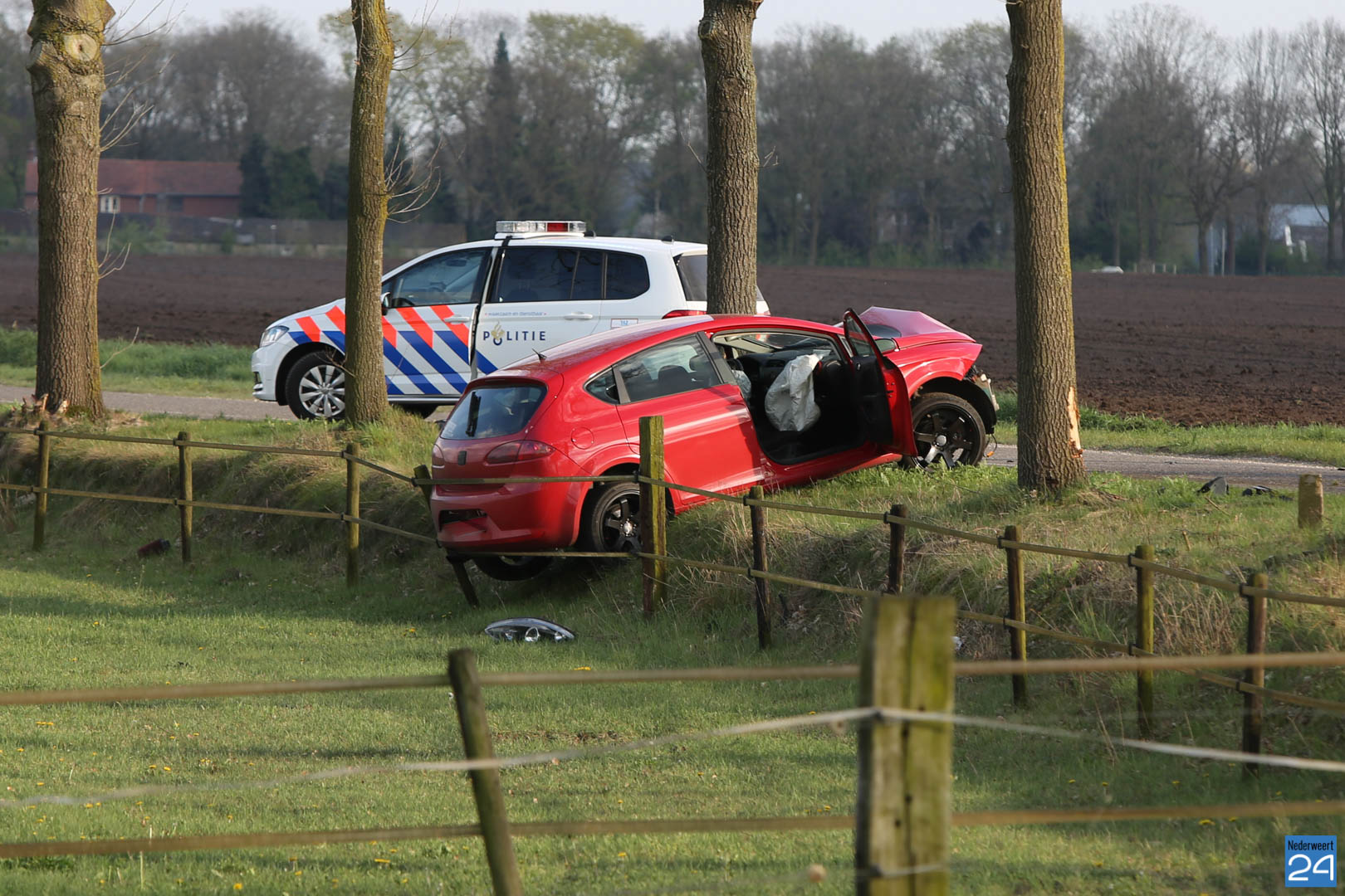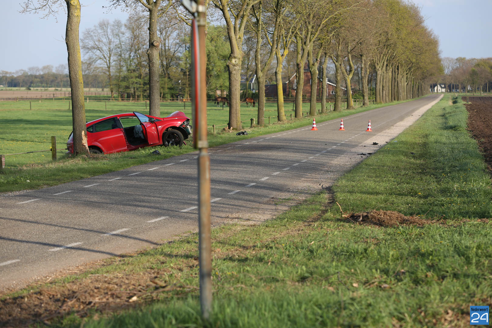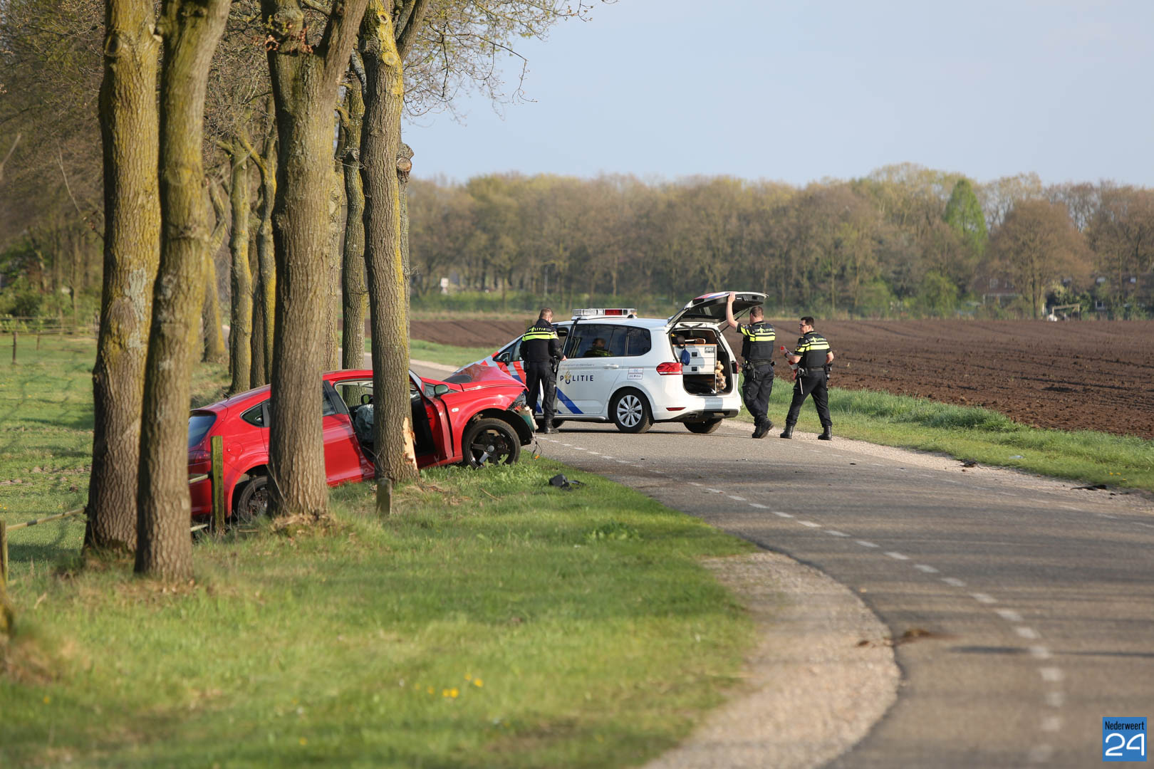 Donderdagmorgen is een auto uit de bocht gevlogen en tegen een boom tot stilstand gekomen op de Grathemerweg in Kelpen-Oler.