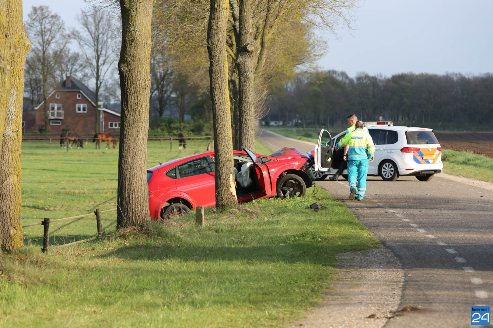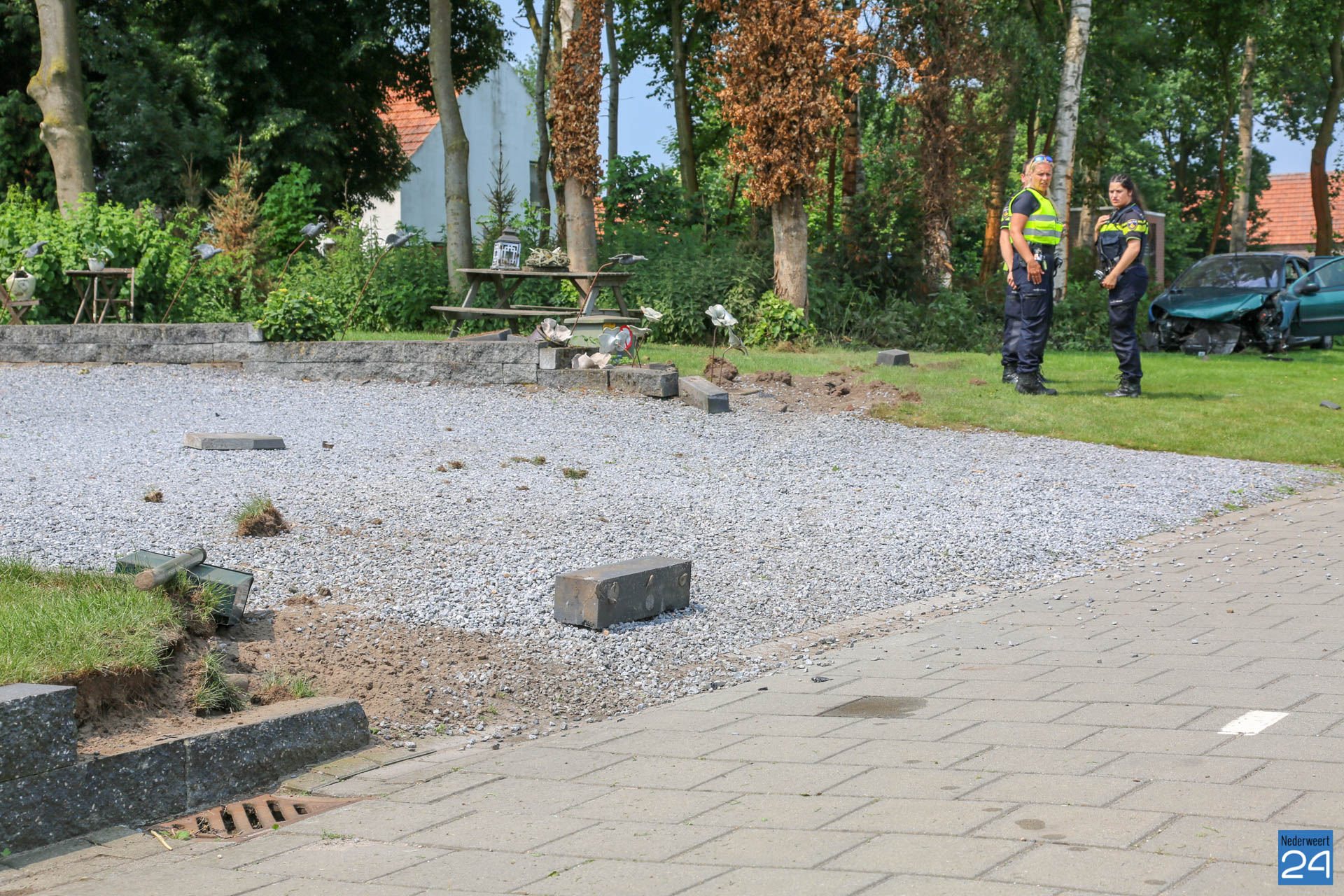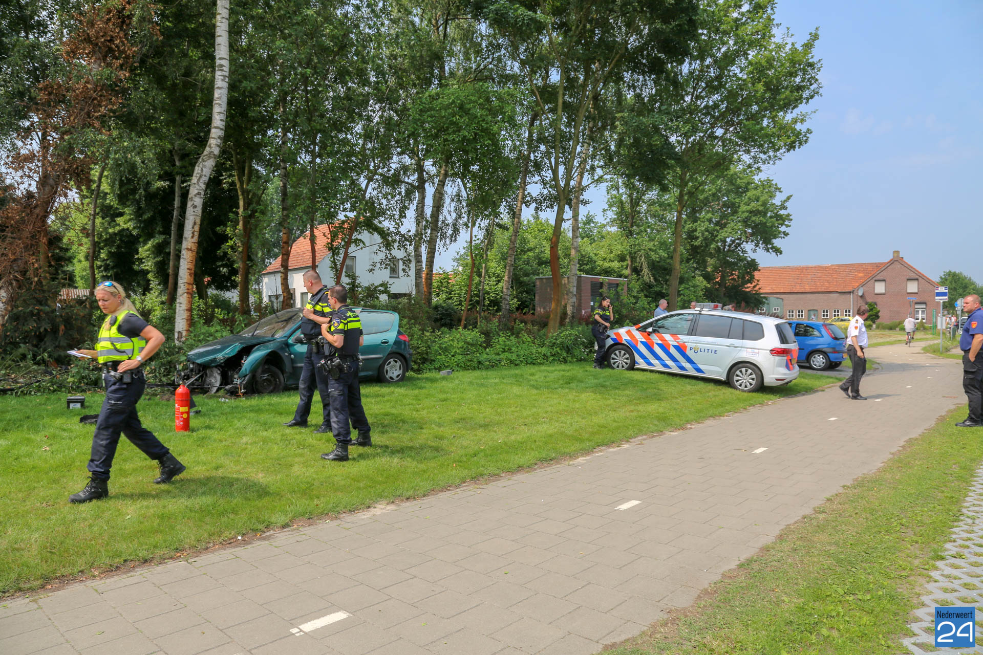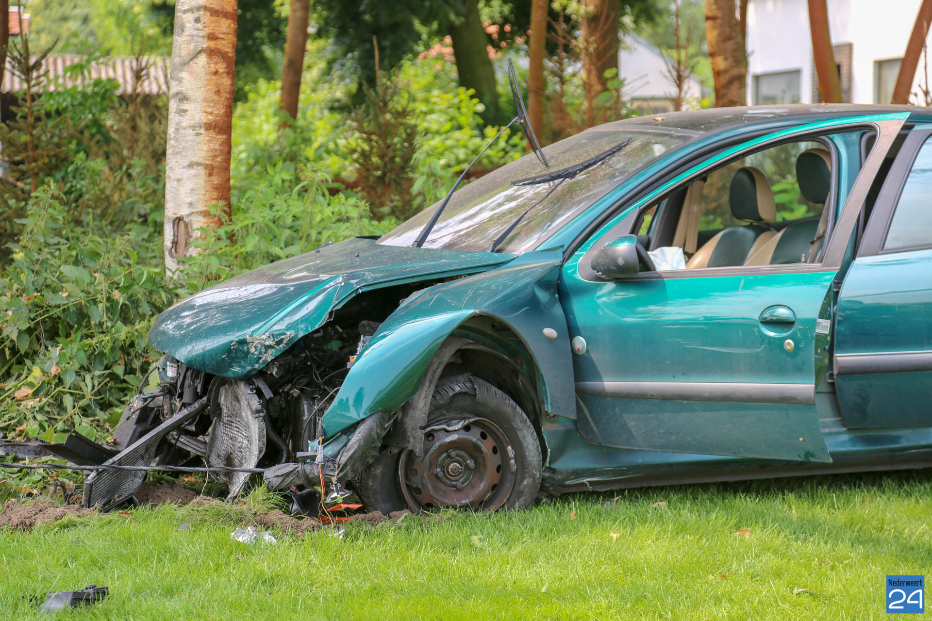 De auto reed vanuit Grathem richting Kelpen-Oler en is door nog onbekende oorzaak uit de bocht gevlogen. Hierbij heeft de personenauto twee muurtje van een oprit geramd en is tegen een boom tot stilstand gekomen. De bestuurder van de auto raakte gewond en is door het ambulancepersoneel nagekeken en met spoed overgebracht naar het ziekenhuis.