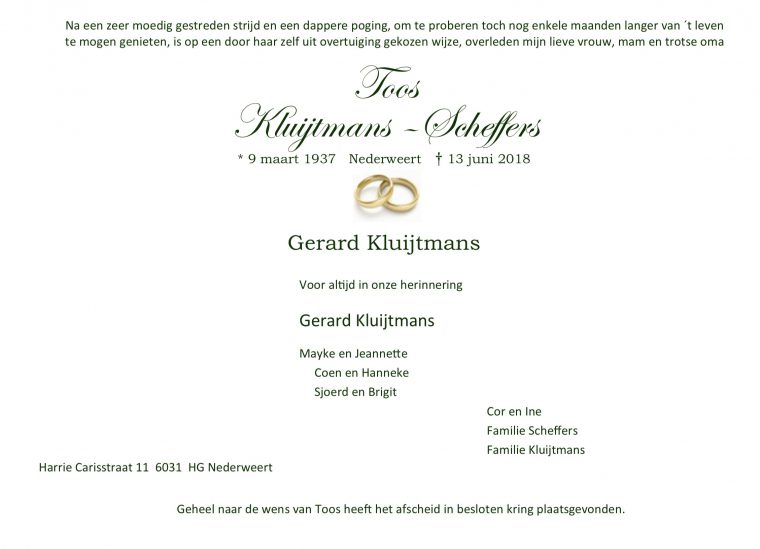 Overlijdensbericht: Toos Kluijtmans –Scheffers