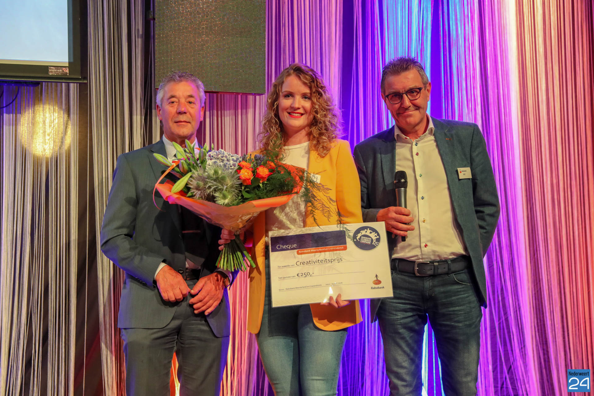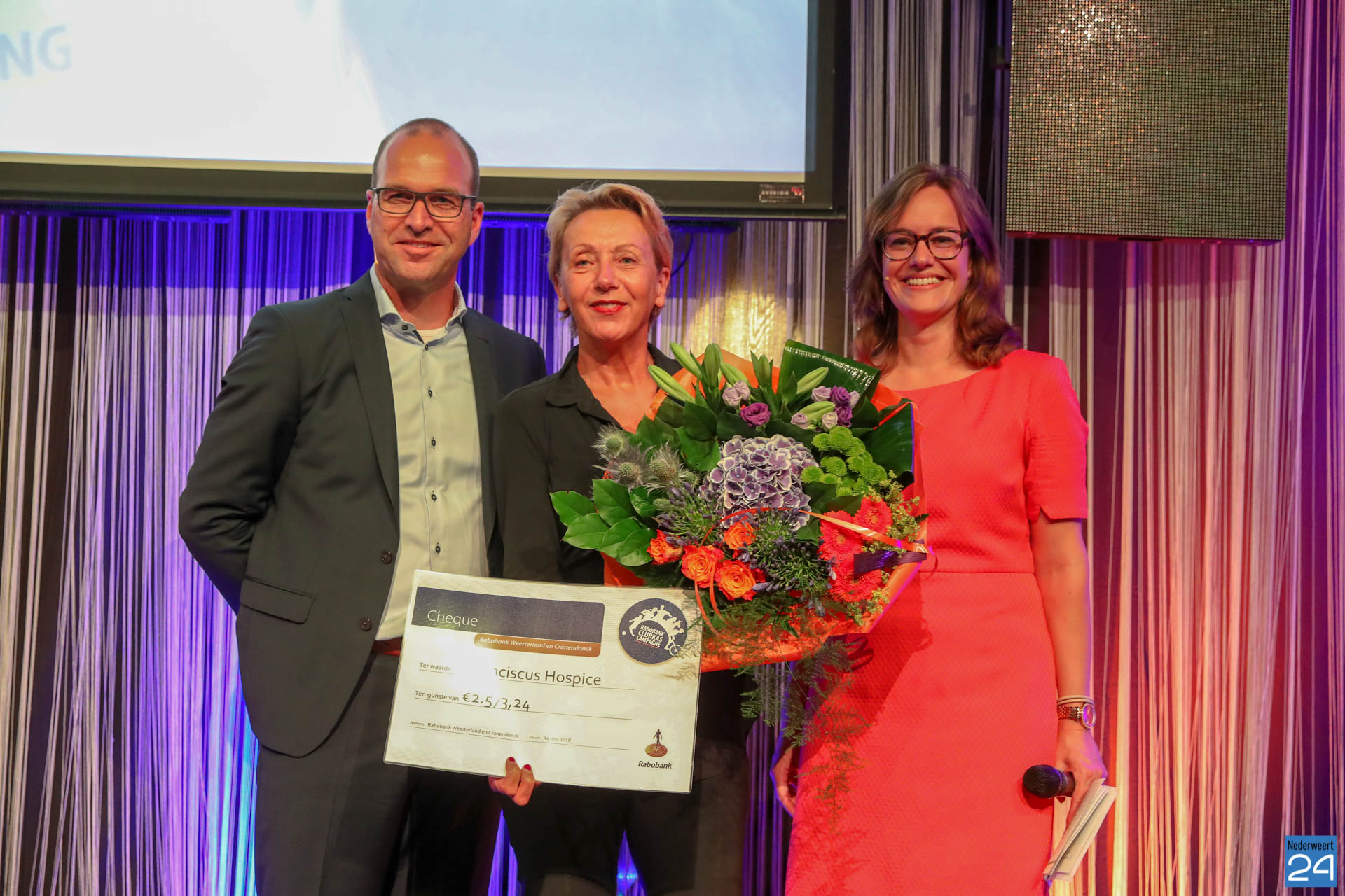 Kinderboerderij Bèèle Erfke in Stramproy kreeg 367 stemmen en daarmee een bedrag van 1189,40 euro. Johan Heijnen mocht de tweede plaats uitreiken aan Ouderen vereniging Sint Willibrordus in Stramproy. Met 596 stemmen ging er € 1931,55 naar de vereniging. voor het bouwen van een overkapping voor scootmobielen en fietsen. Stichting Franciscus Hospice in Weert haalde de meeste stemmen. Er ging in totaal € 2573,24 naar de stichting voor het bouwen van een stilteruimte met zitgelegenheid.