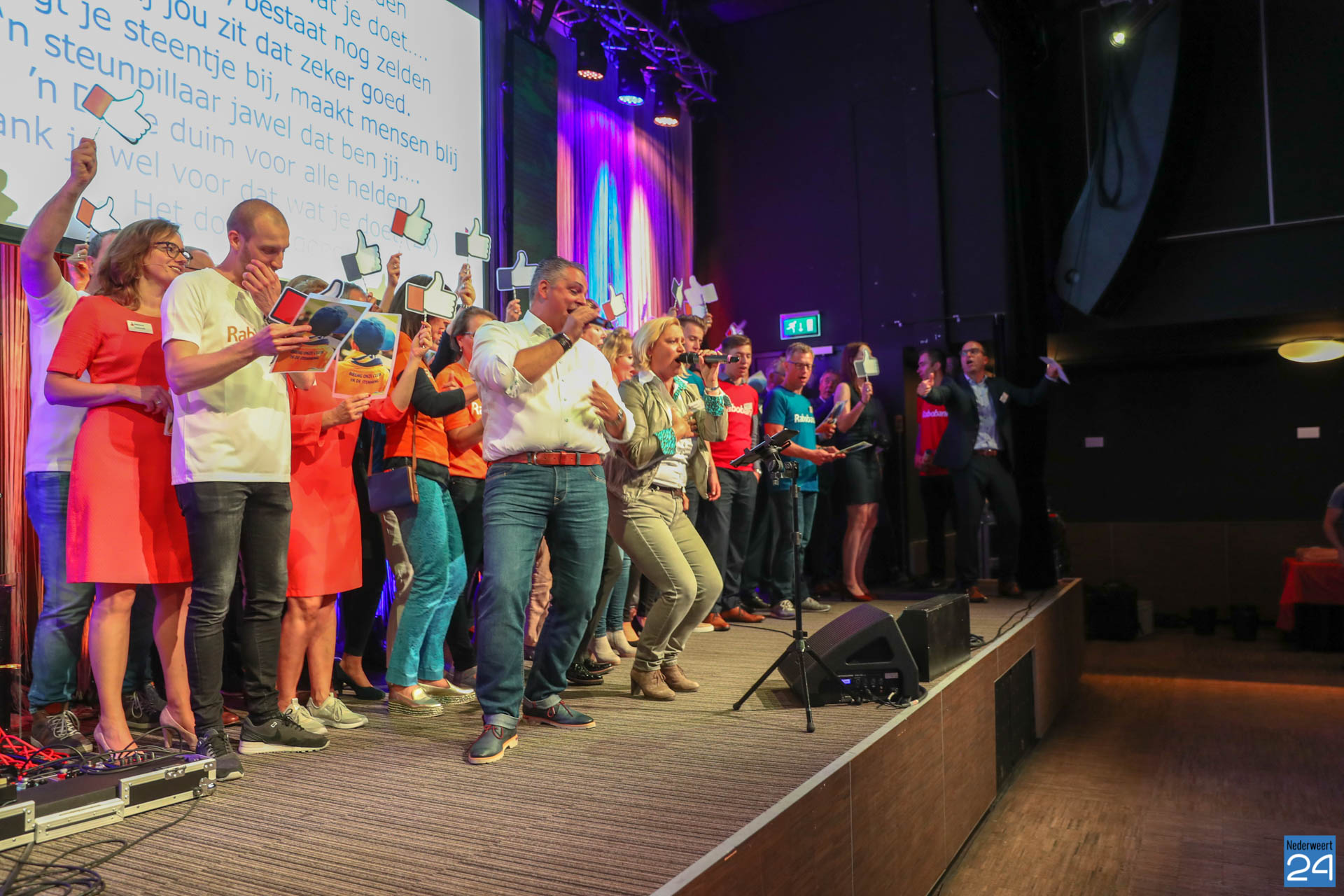 Op het einde brachten de medewerkers van de Rabobank een serenade aan “de Helden” onder begeleiding van het duo Mark en Wilhelmien.
