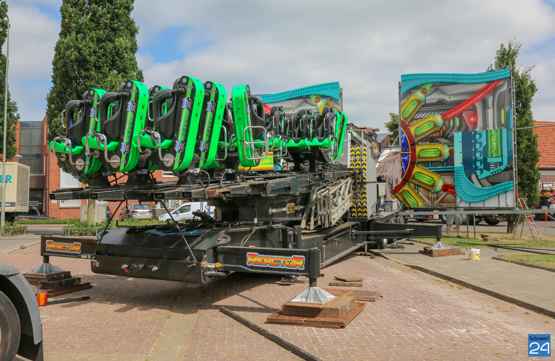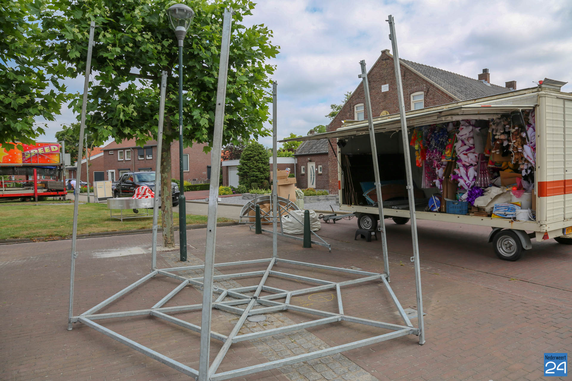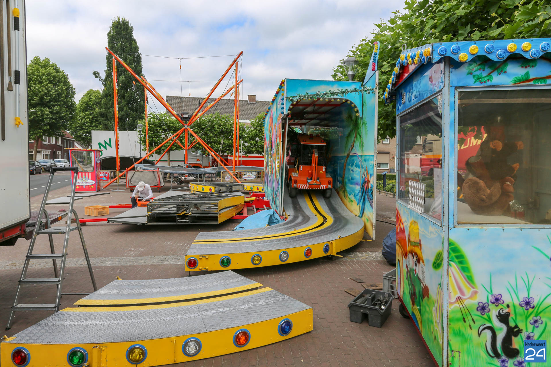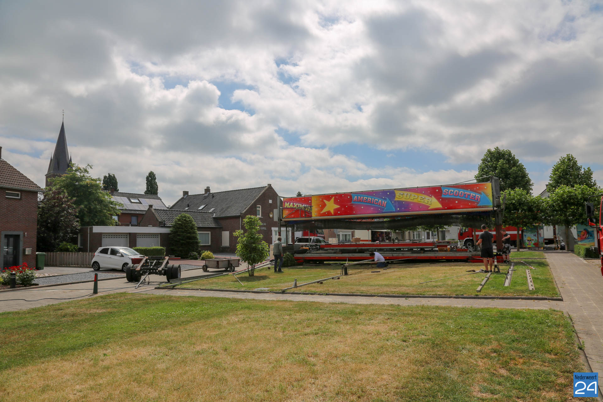 Woensdagochtend was men al druk doende met de opbouw van de kermis op het Aerthijsplein in Ospel. De organisatie heeft dit jaar twee nieuwe spectaculaire attracties weten te vinden. De Reactor, een super snelle molen én de Sjimmy. Vanmiddag 16:00 uur wordt de Onze Lieve Vrouwestraat, ter hoogte van het Aerthijsplein tot aan de kerk, afgesloten voor alle verkeer behalve voetgangers.