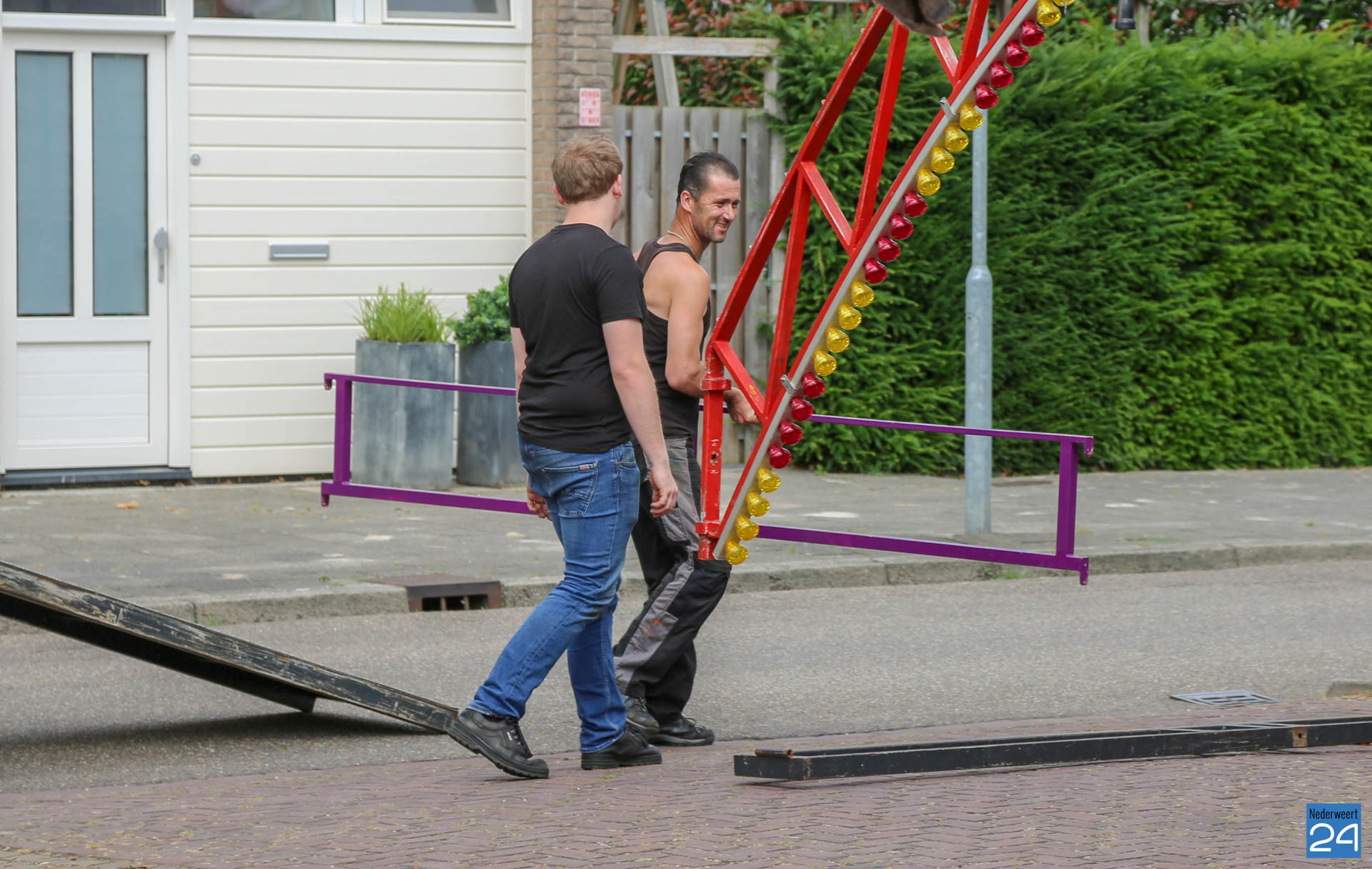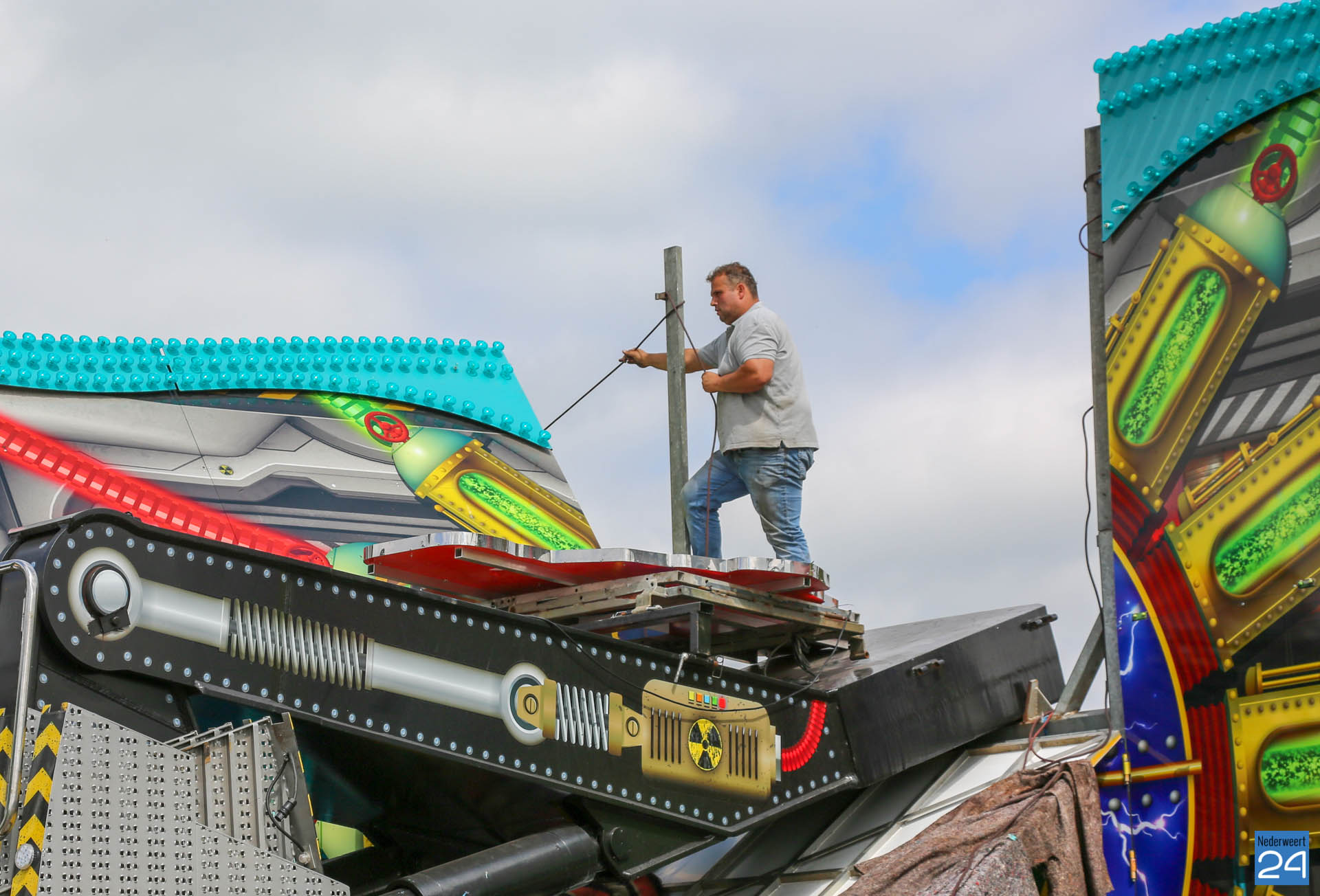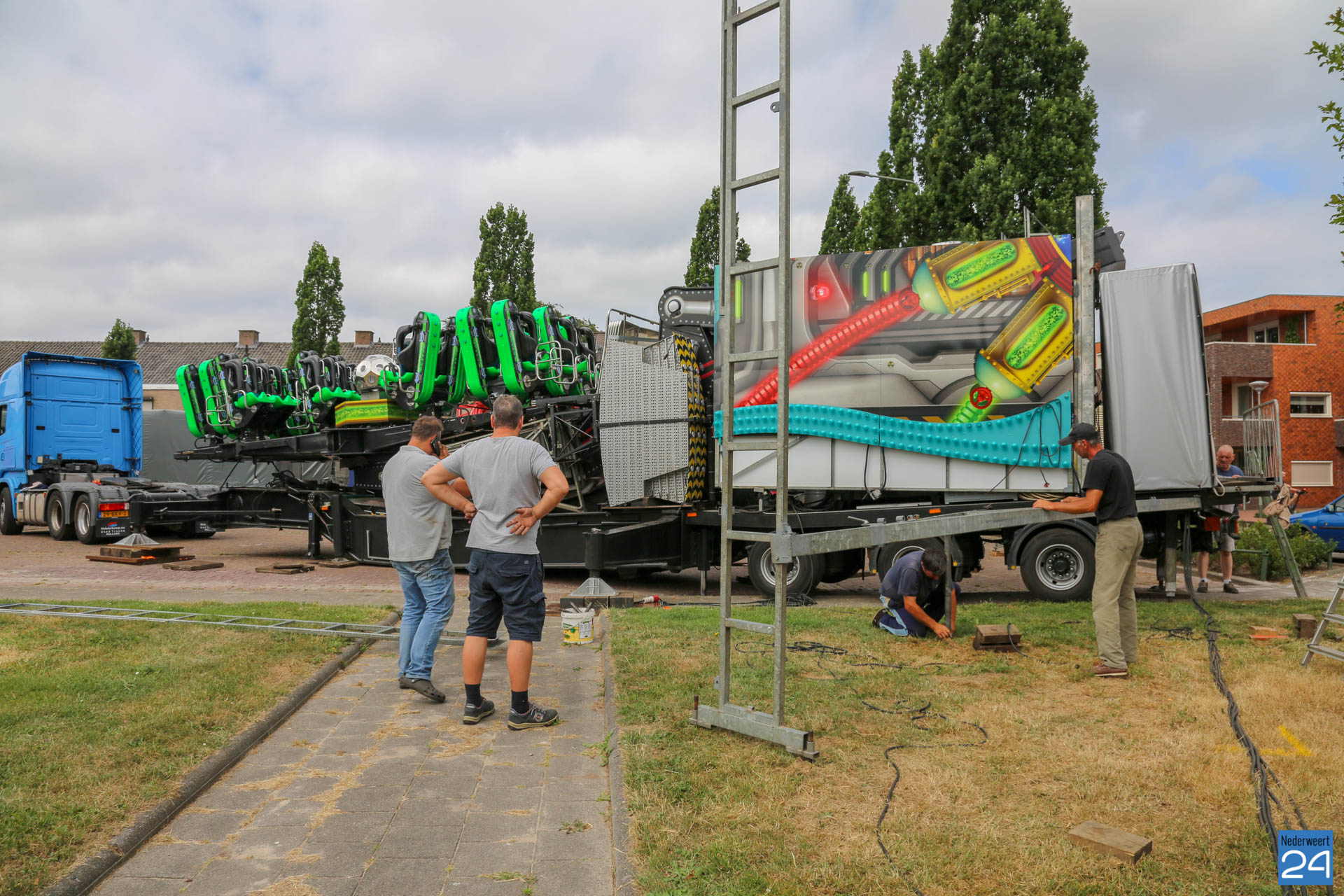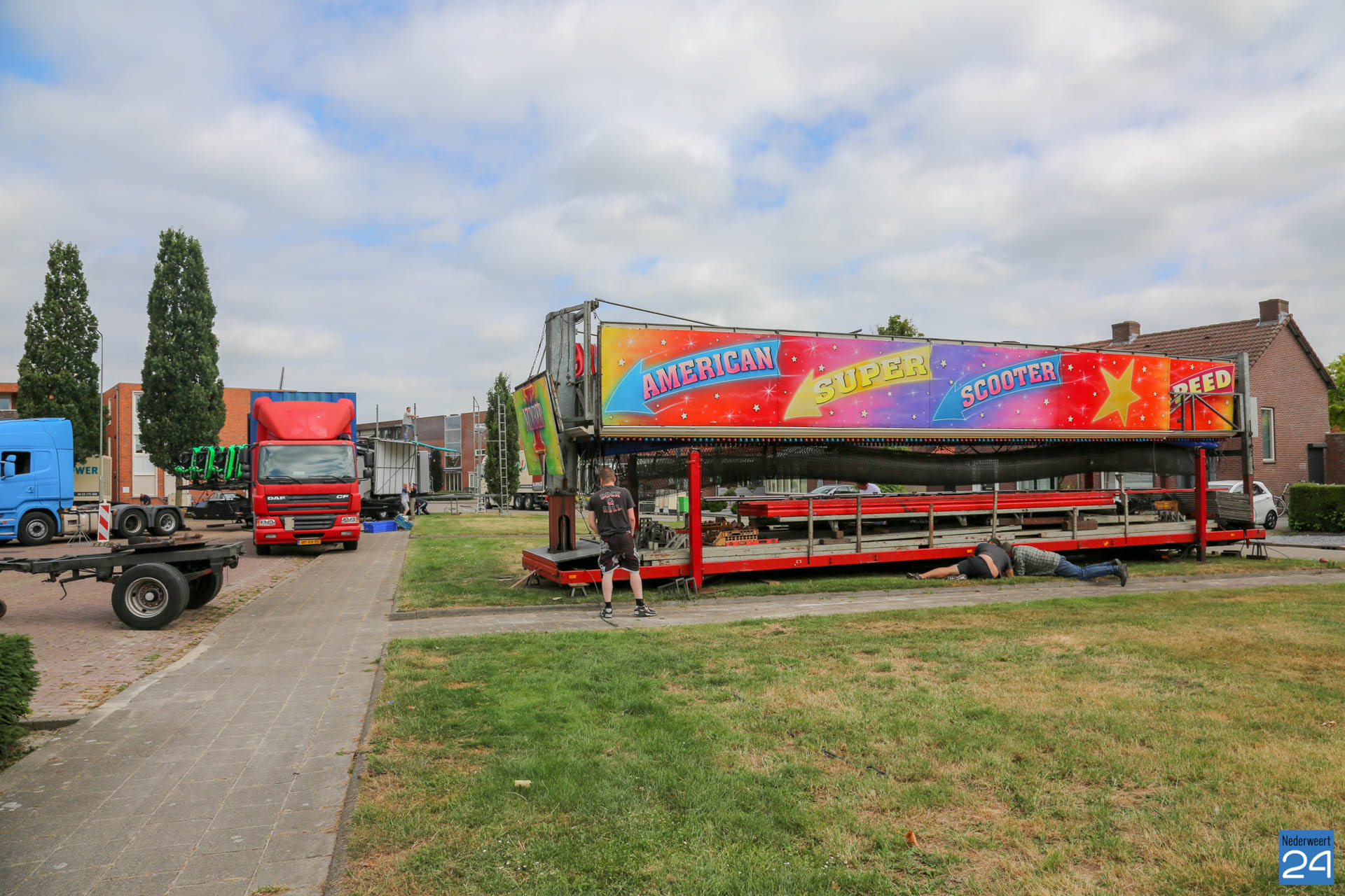Woensdagochtend was men al druk doende met de opbouw van de kermis op het Aerthijsplein in Ospel. De organisatie heeft dit jaar twee nieuwe spectaculaire attracties weten te vinden. De Reactor, een super snelle molen én de Sjimmy. Vanmiddag 16:00 uur wordt de Onze Lieve Vrouwestraat, ter hoogte van het Aerthijsplein tot aan de kerk, afgesloten voor alle verkeer behalve voetgangers.