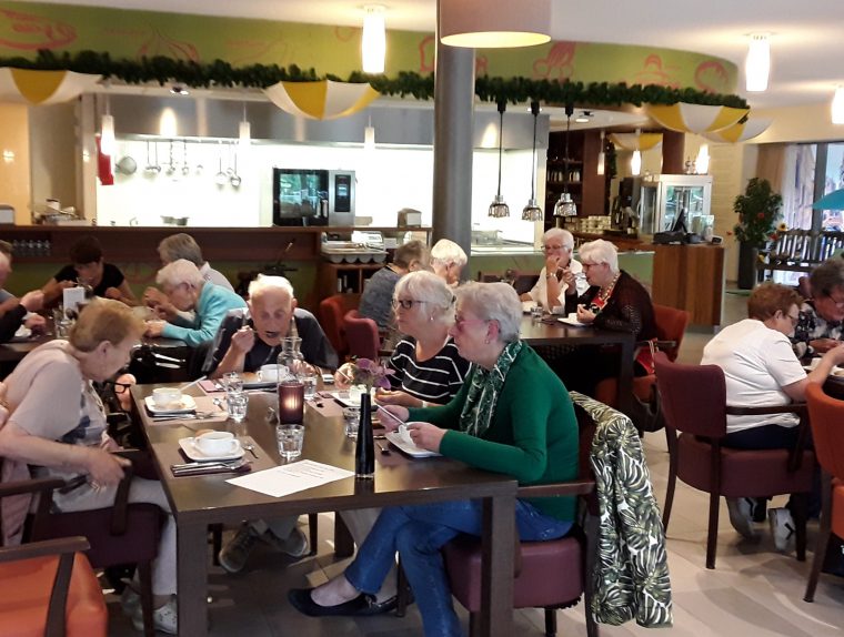 Gisteravond werd het gezelschap van “Ontmoeten doet groeten” gastvrij ontvangen door de medewerkers van Gasterij De Ontmoeting in Zorgcentrum St Joseph. De aanwezigen kregen een lekker dinertje voorgeschoteld. Het voorgerecht was gebonden lente-ui soep. Het hoofdgerecht bestond uit een kipcordon blue, Parijse worteltjes met peterselie, aardappelpurée, aardappelkroketjes en een lekkere salade. Als toetje waren er diverse soorten vla met slagroom. Het was een gezellige avond.