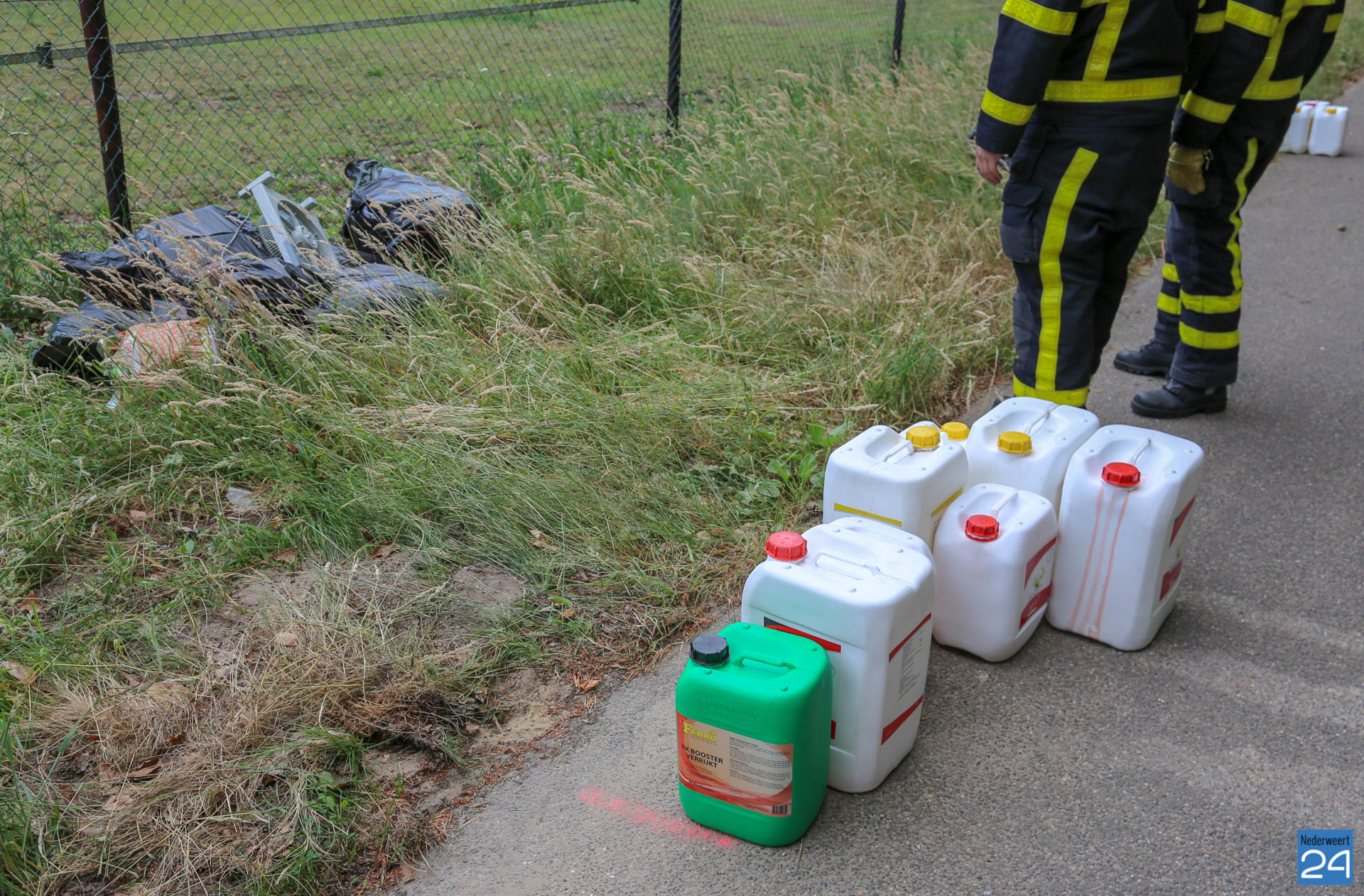Omdat er ook vaatjes werden gevonden, werd de brandweer opgeroepen. Deze heeft het gebied veiliggesteld en de gemeente in op de hoogte gebracht. De gemeente zal de vaatjes, de potgrond en een ventilator ophalen en vernietigen.