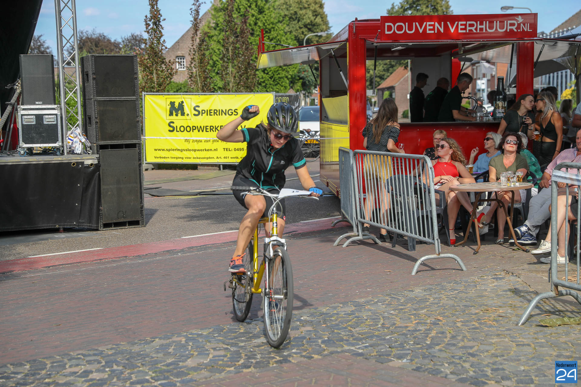 Tijdens deze straatrace wordt er een parcours gefietst met verschillende, uitdagende hindernissen waarbij een goed geveerde mountainbike geen overbodige luxe is. Toen de klokken ‘vijf uur’ sloegen ging de race van start. Spannend voor de renners maar ook spannend voor de presentatoren die stonden te poppelen om hun commentaar de speakers in te galmen. Een fantastisch schouw spel om naar te kijken én te luisteren.