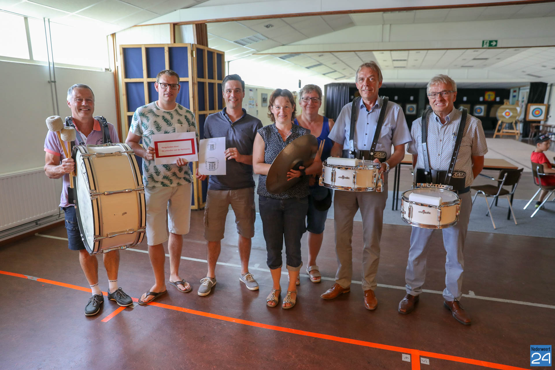 Aan het einde van de familiedag, die de leden van de harmonie per fiets door het Nederweerter land aflegden, vond er in het clublokaal Willem Tell een gezellige nazit plaats. Een delegatie van de ‘Vrienden van Harmonie St. Joseph‘ kwam met veel trommelgeweld de aanwezige leden en het bestuur verrassen door het symbolisch aanbieden van 7 snare drums.