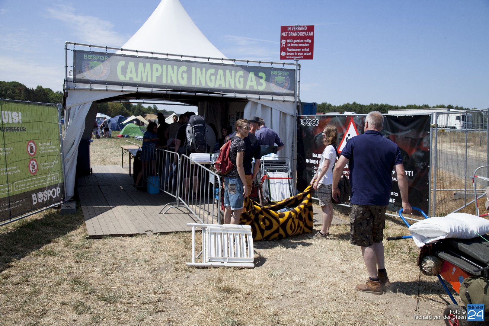 Vanmorgen om 10:00 opende Bospop de camping. Vanaf dat moment was het een gesleep en gesjouw om alle tenten, luchtbedden en verdere spulletjes op het terrein te krijgen. Vanuit alle windstreken van het land en ver daarbuiten vinden bezoekers het Bospopterrein in Weert waar dit weekend de 38e editie wordt gehouden.