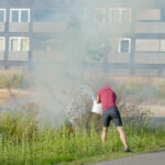 Terwijl de brandweer onderweg was, werd de eerste bluspoging al gedaan door omwonenden. De brandweerlieden hadden het vuur snel onder controle.