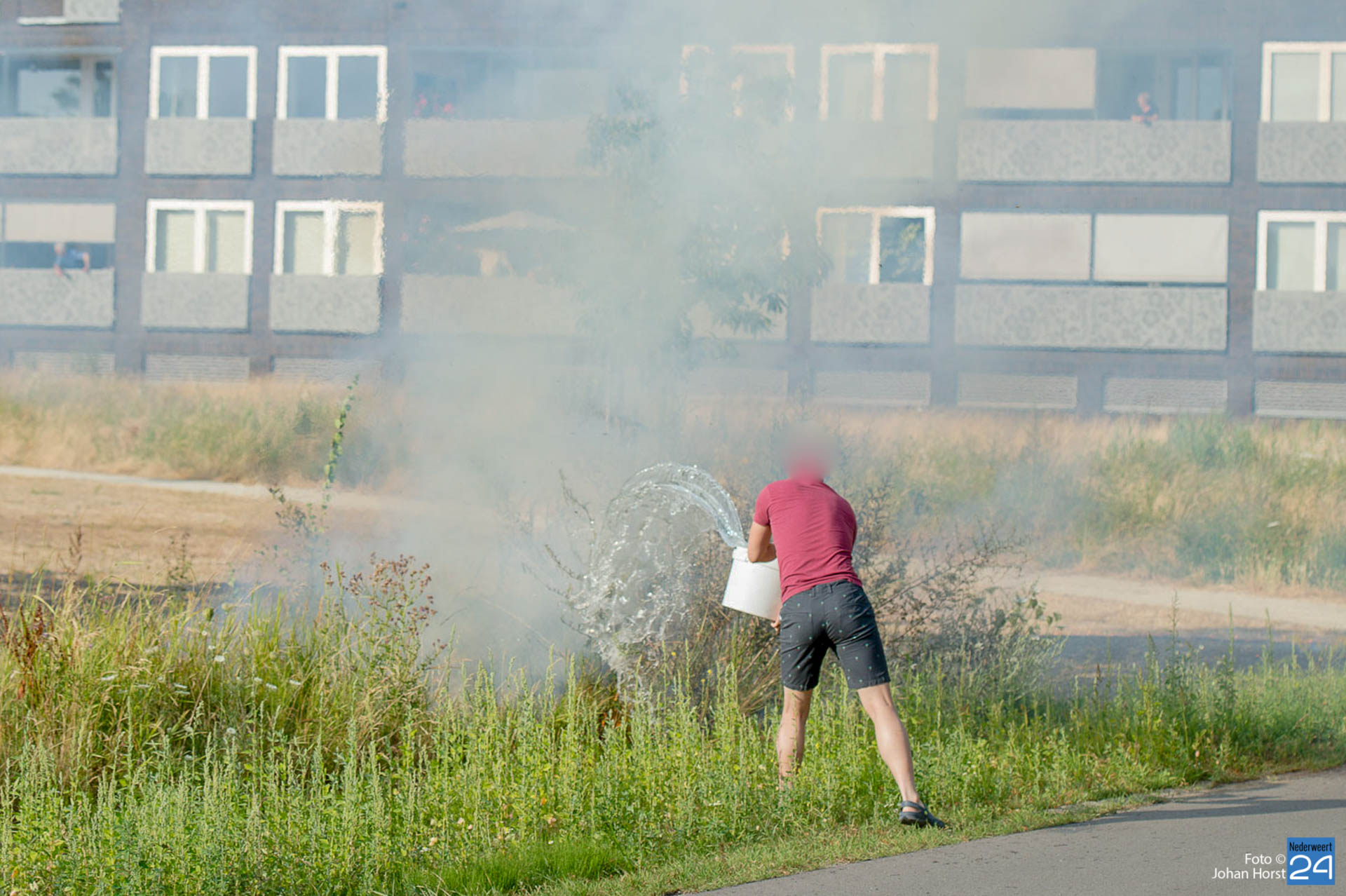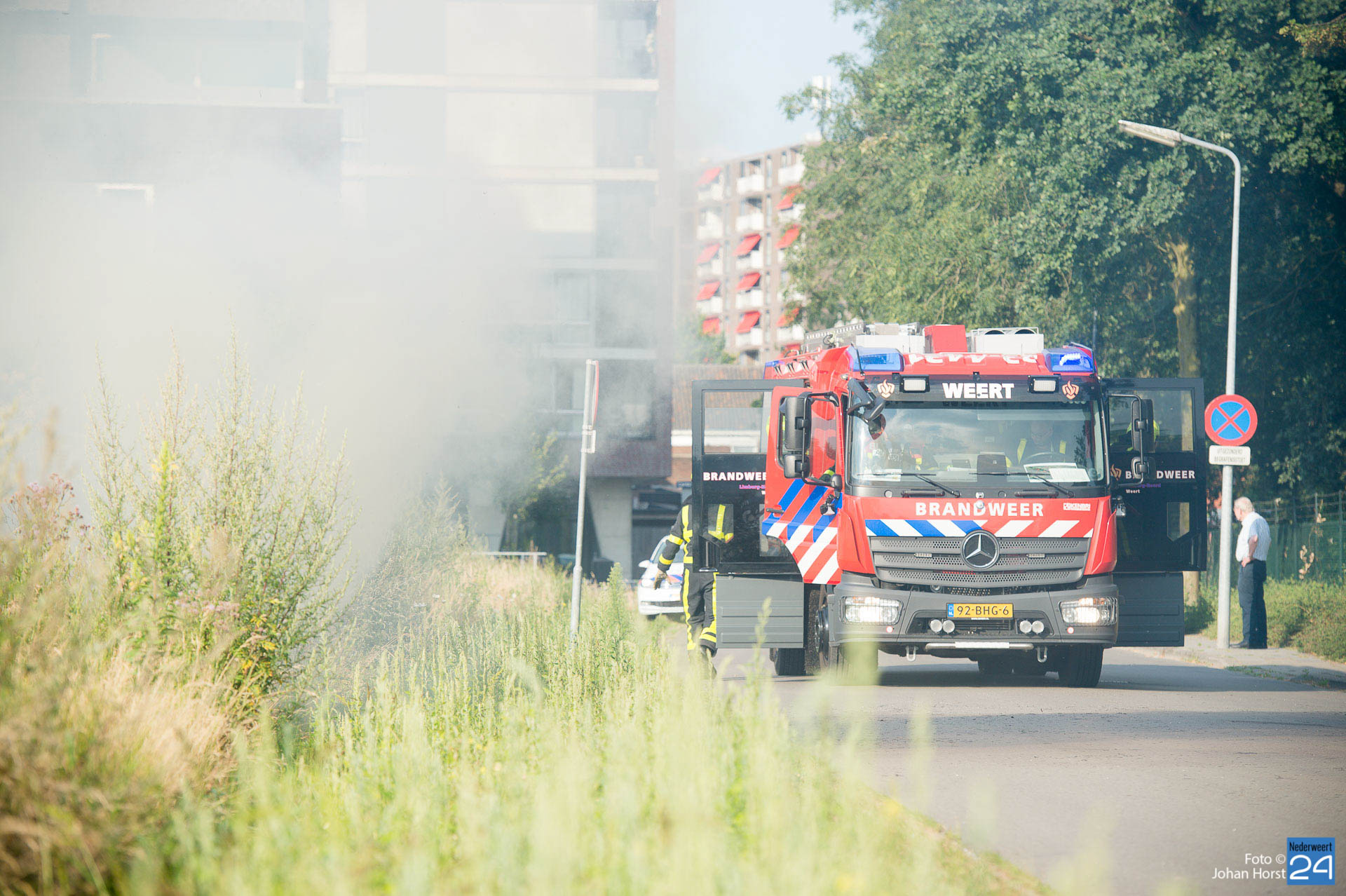 Terwijl de brandweer onderweg was, werd de eerste bluspoging al gedaan door omwonenden. De brandweerlieden hadden het vuur snel onder controle.