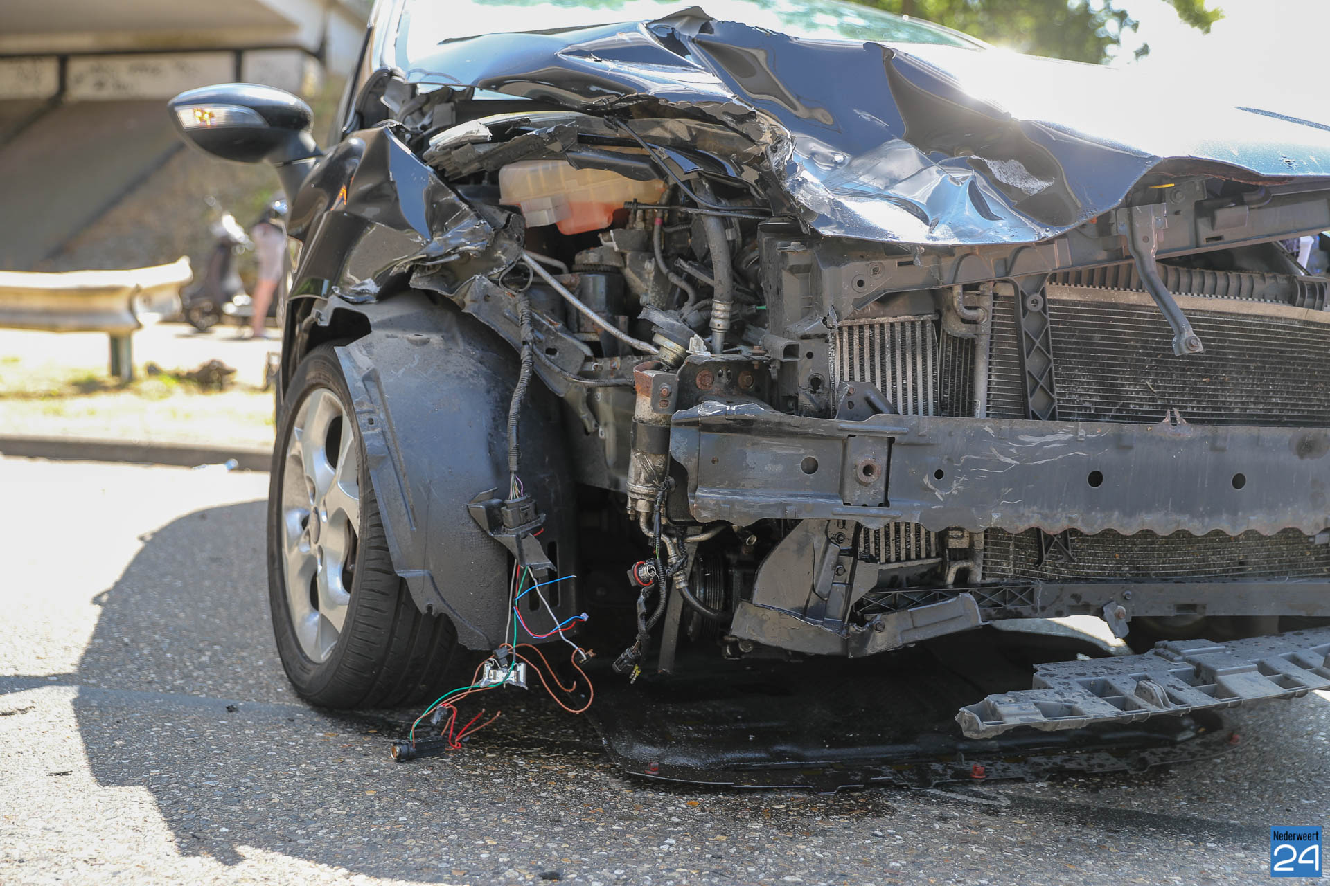 Zaterdagmiddag zijn twee personenauto’s hard met elkaar in botsing gekomen ter hoogte van het viaduct over de Graafschap Hornelaan in Weert. Hierbij raakte niemand gewond.