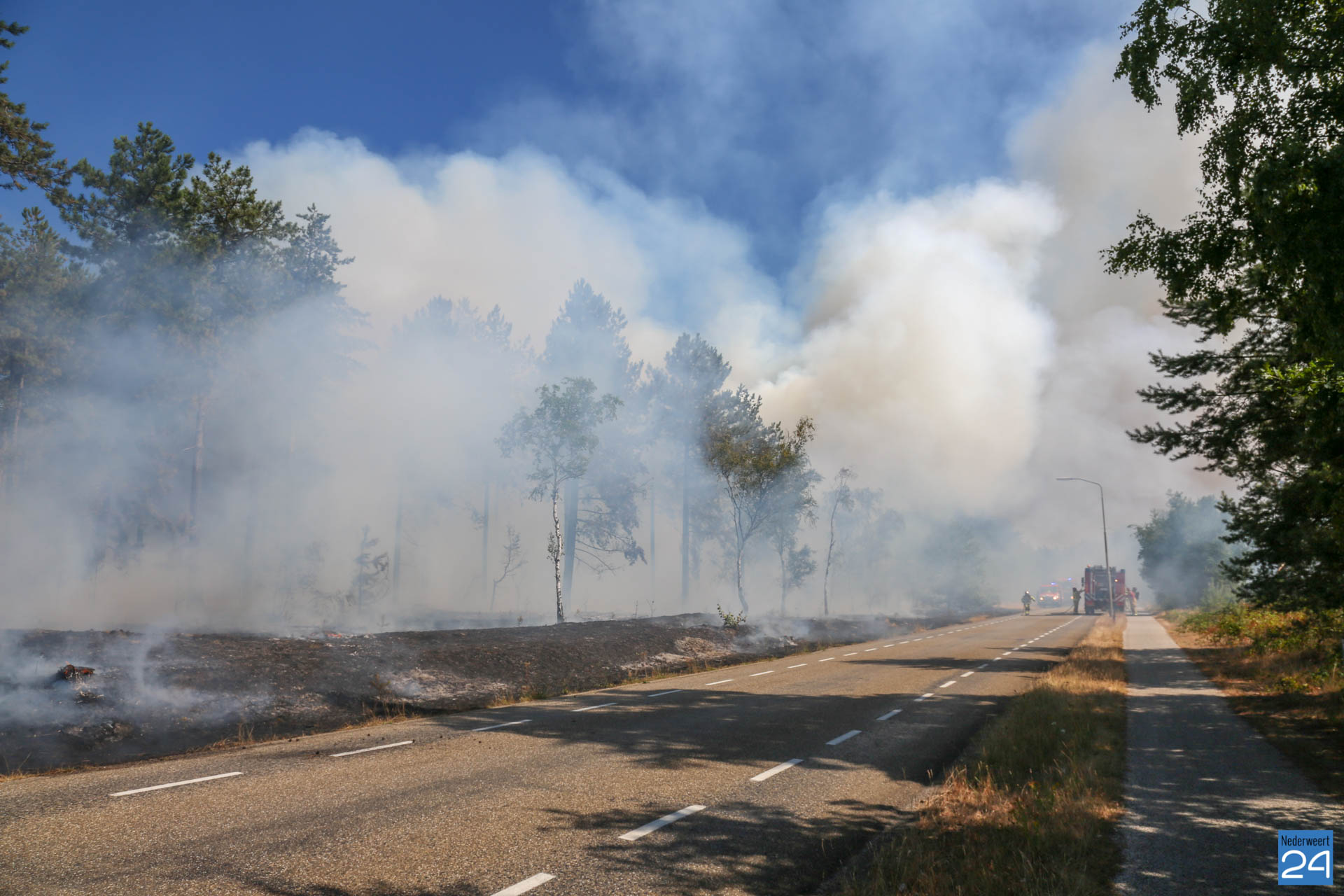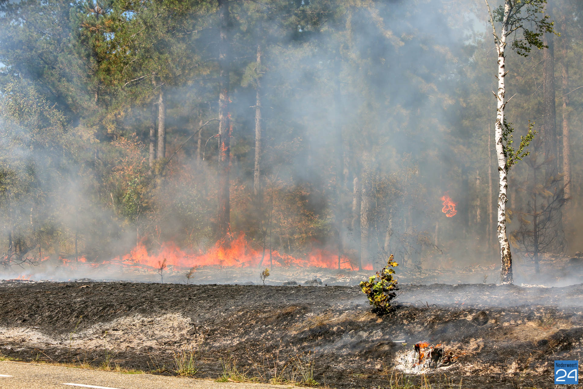 Een groot stuk bos is uitgebrand. Hoe het vuur heeft kunnen ontstaan is niet duidelijk. Ook de Nederweerter brandweer is met twee voertuigen aanwezig om het vuur te bestrijden. De brandweer heeft opgeschaald naar ”zeer grote brand”.