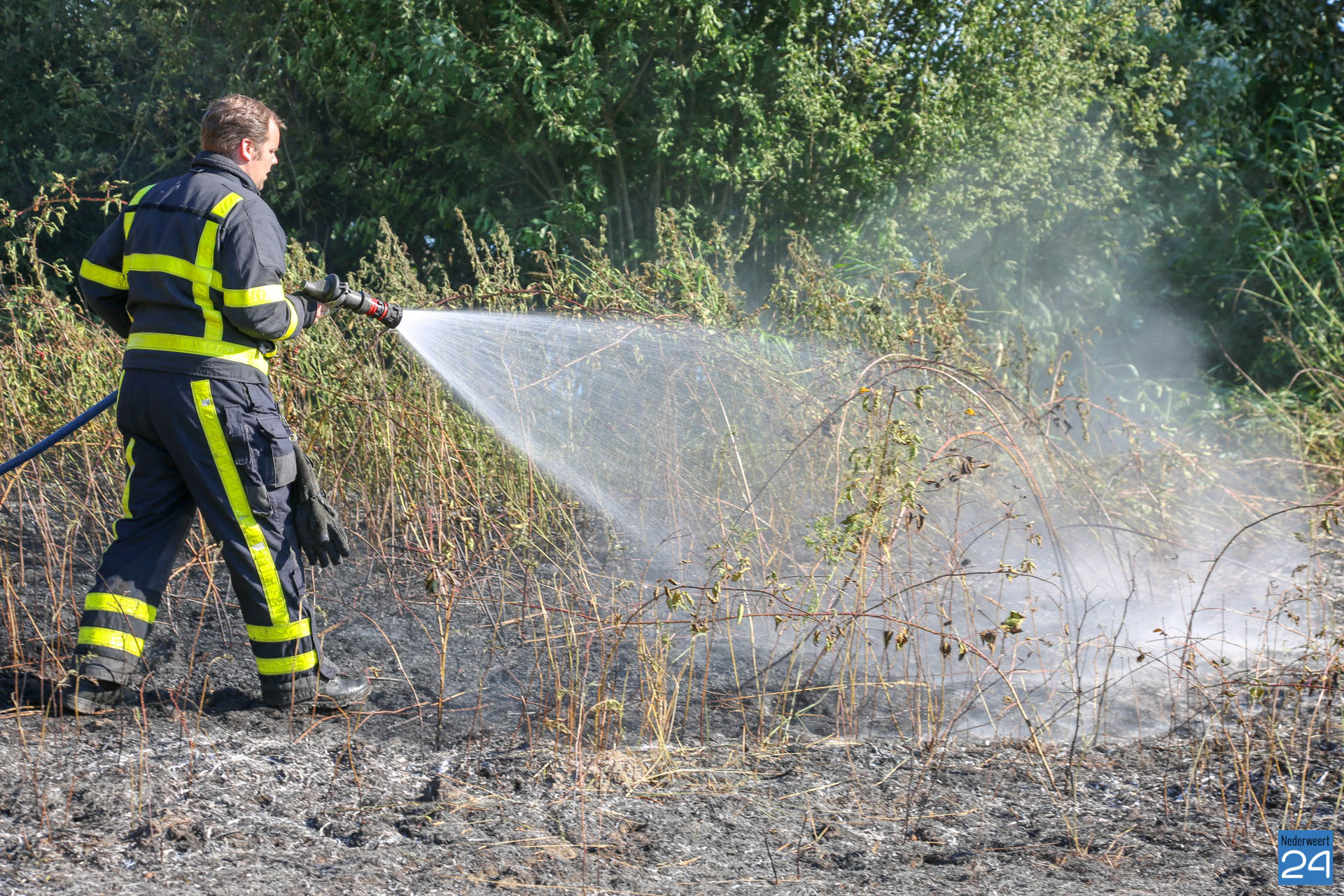 Een wegwerp BBQ is de veroorzaker van een flinke natuurbrand aan de Kanaalweg in Nederweert-Eind. De brand verspreidde zich snel waarop de brandweer opschaalde naar ”middelbrand”.