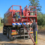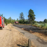 Verschillende blusvoertuigen en waterwagens kwamen ter plaatse om het vuur te bestrijden. De brand was snel onder controle. Een stuk van 50 vierkante meter is weggebrand. Niemand raakte gewond.