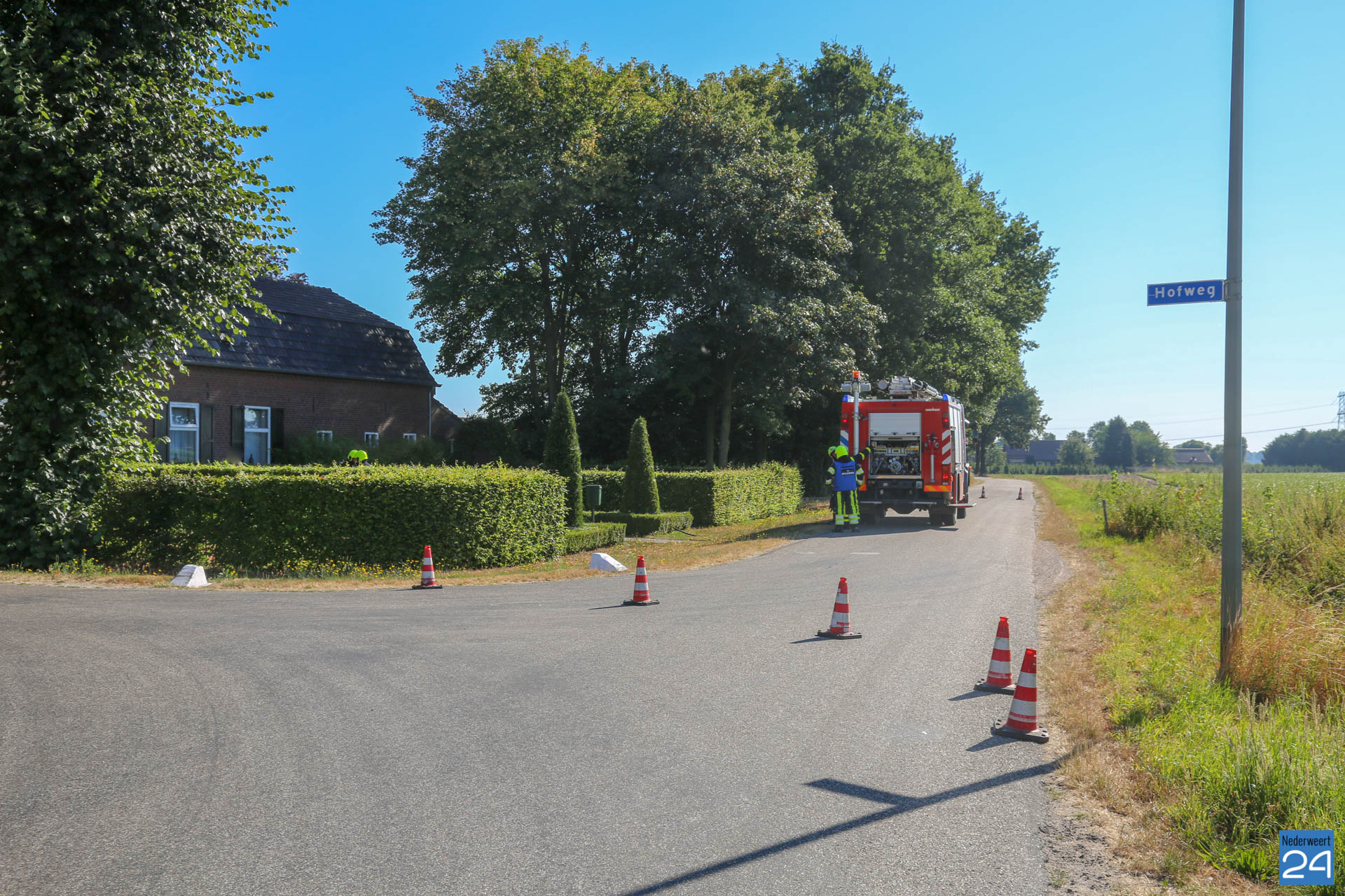 In de voortuin van een woning aan de Kruisvennendijk in Ospel is maandagochtend tijdens het graven een gasleiding geraakt. De brandweer is ter plaatse gekomen en heeft metingen verricht.