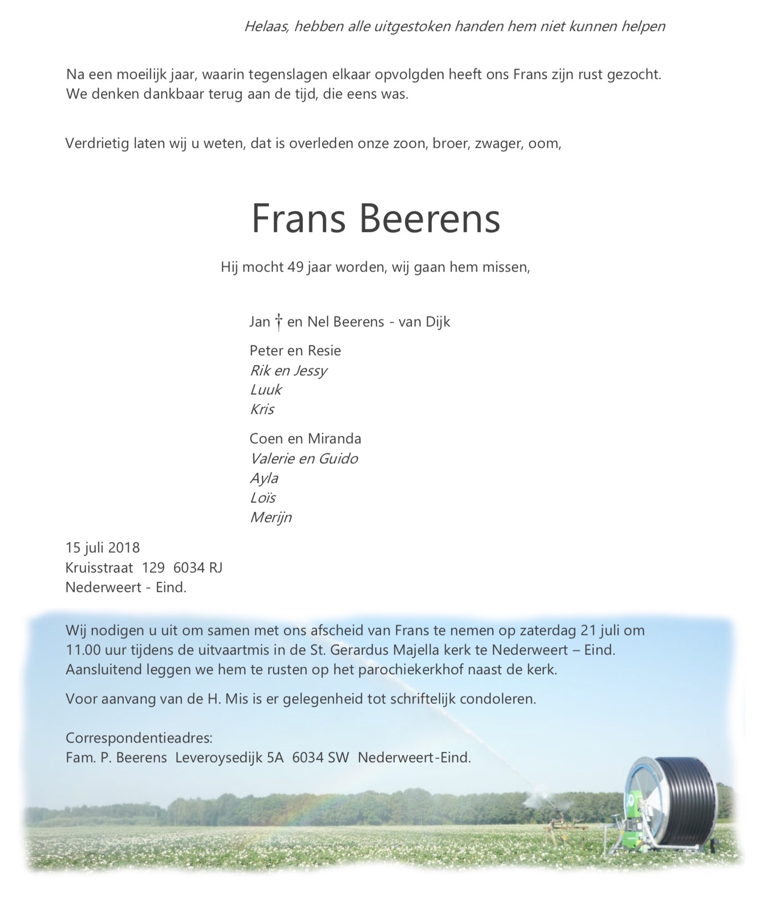 Overlijdensbericht Frans Beerens