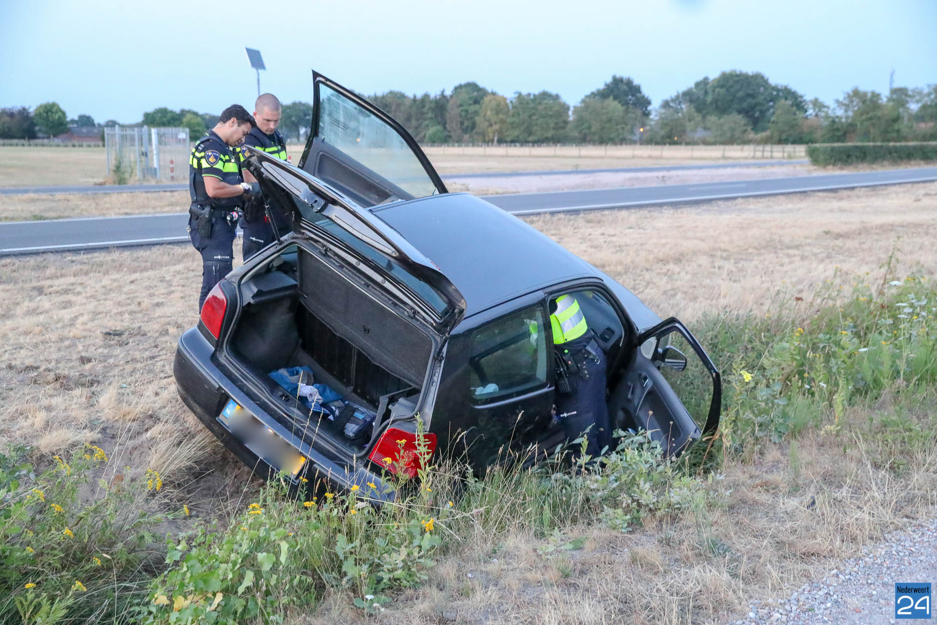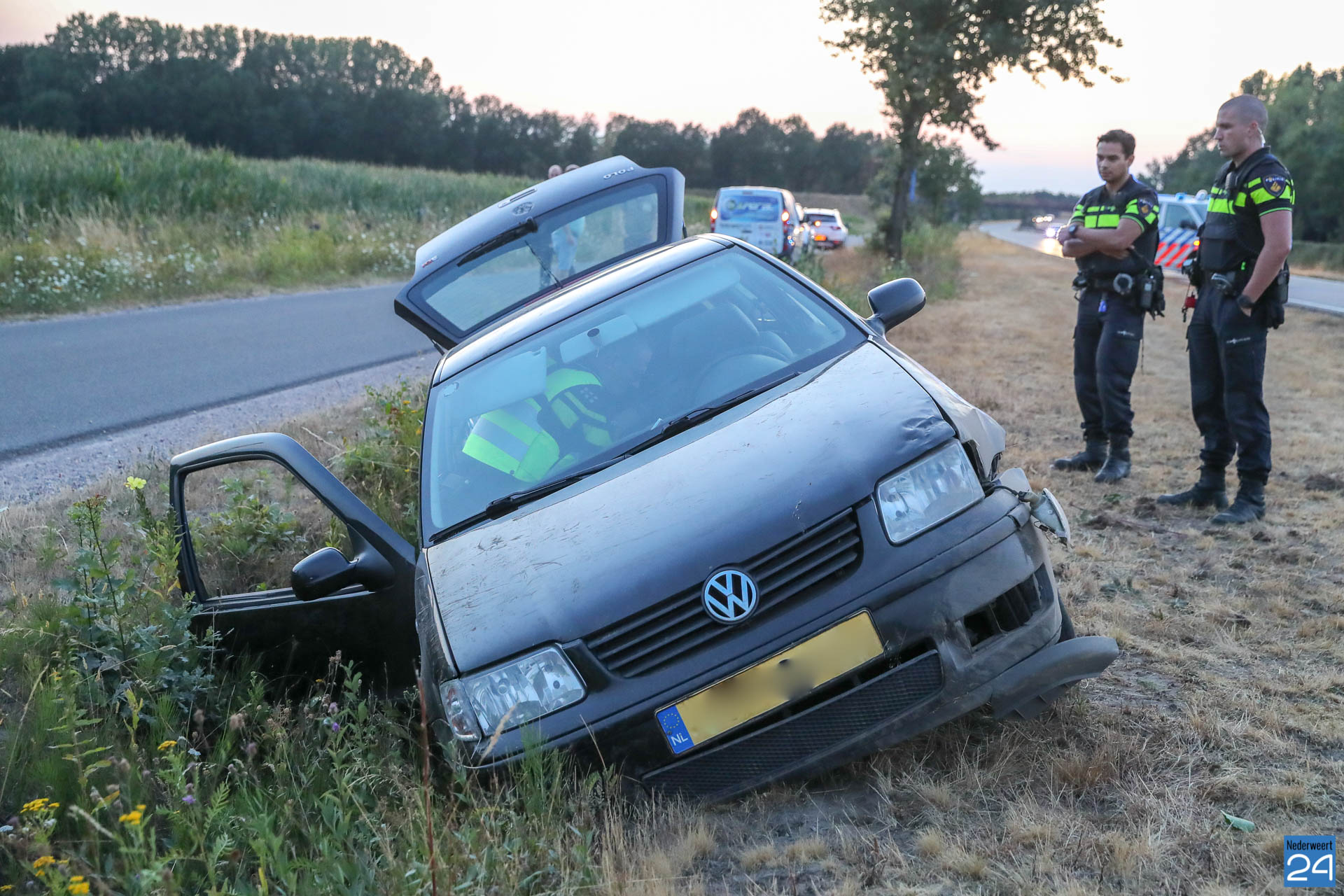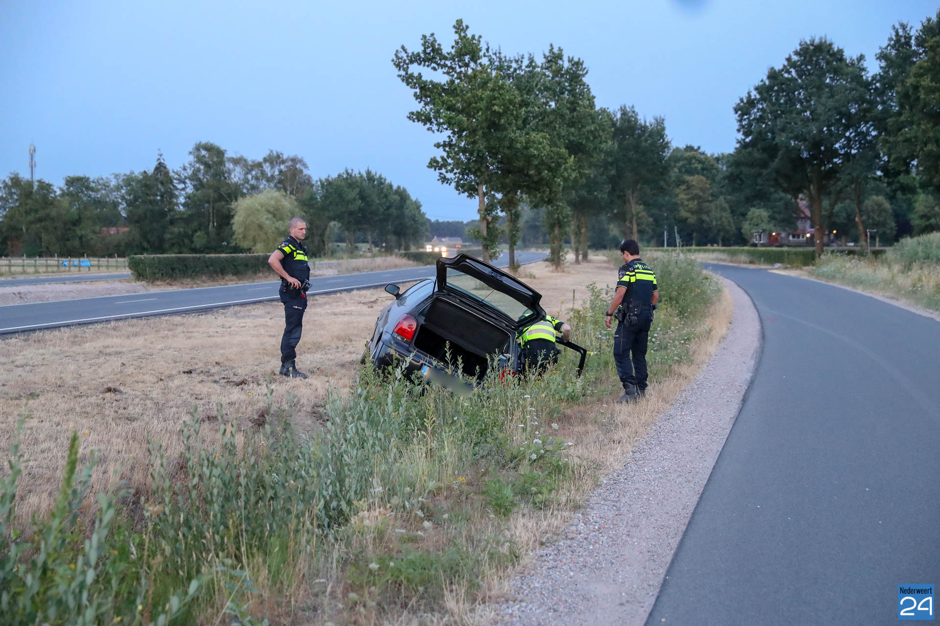 Zaterdagavond is een auto van de weg geschoten en in de sloot hard tot stilstand gekomen. Hierbij raakte de bestuurster licht gewond.