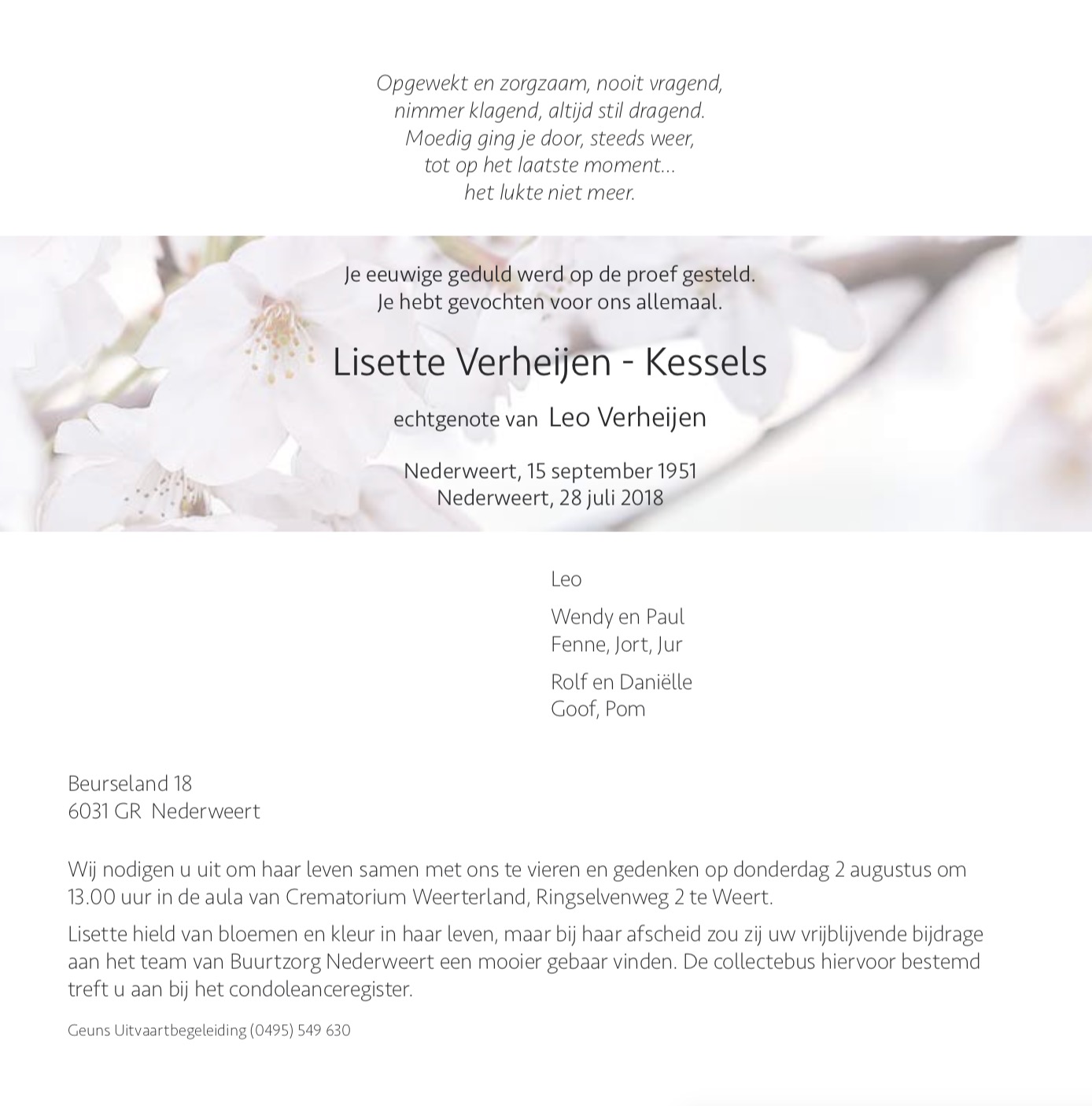 Overlijdensbericht: Lisette Verheijen – Kessels