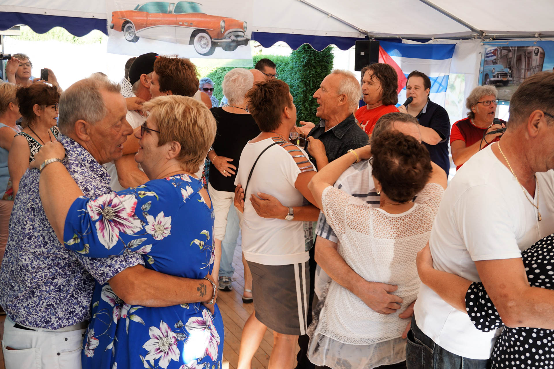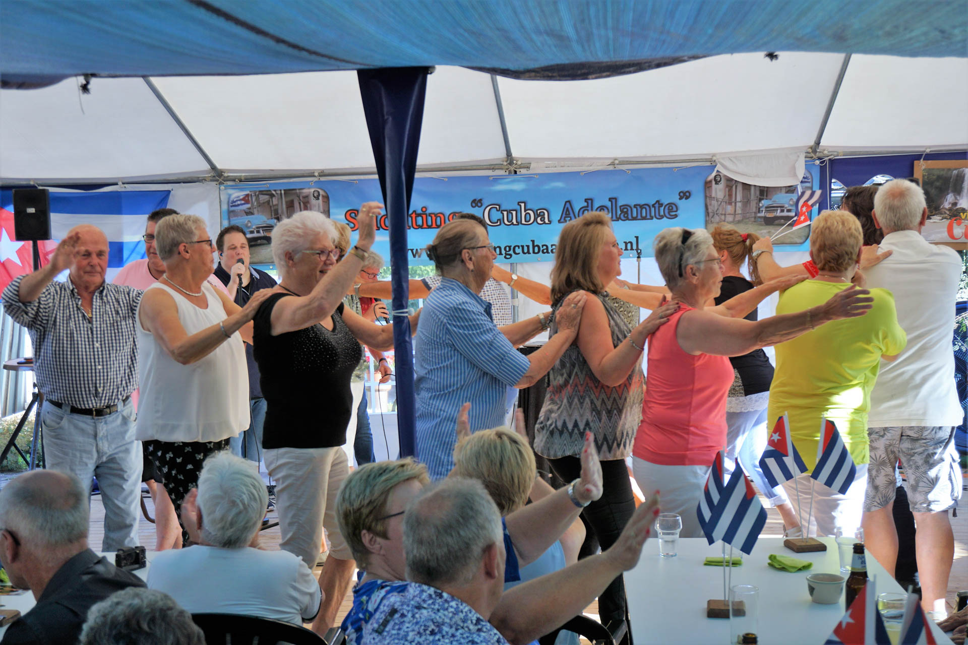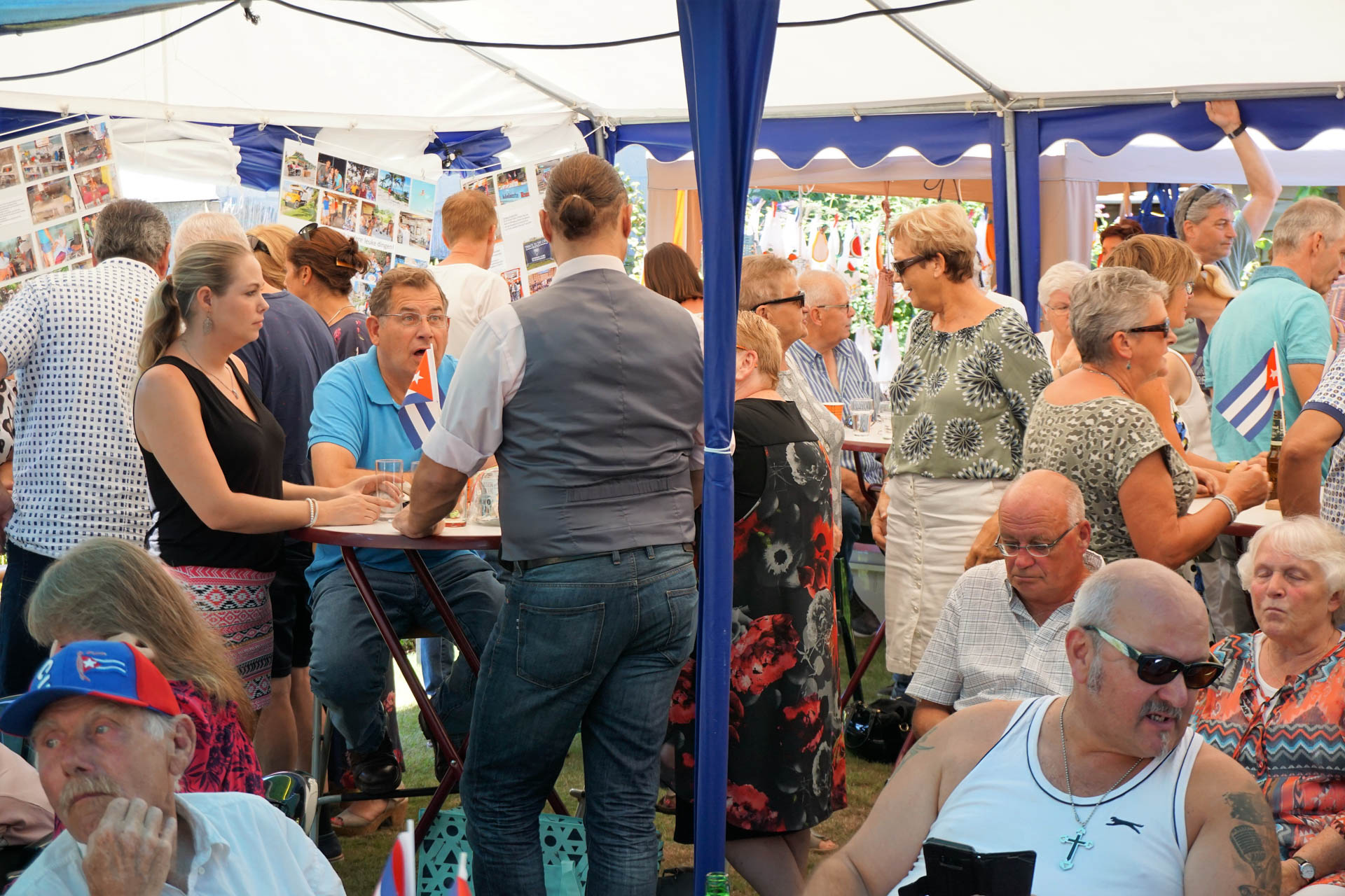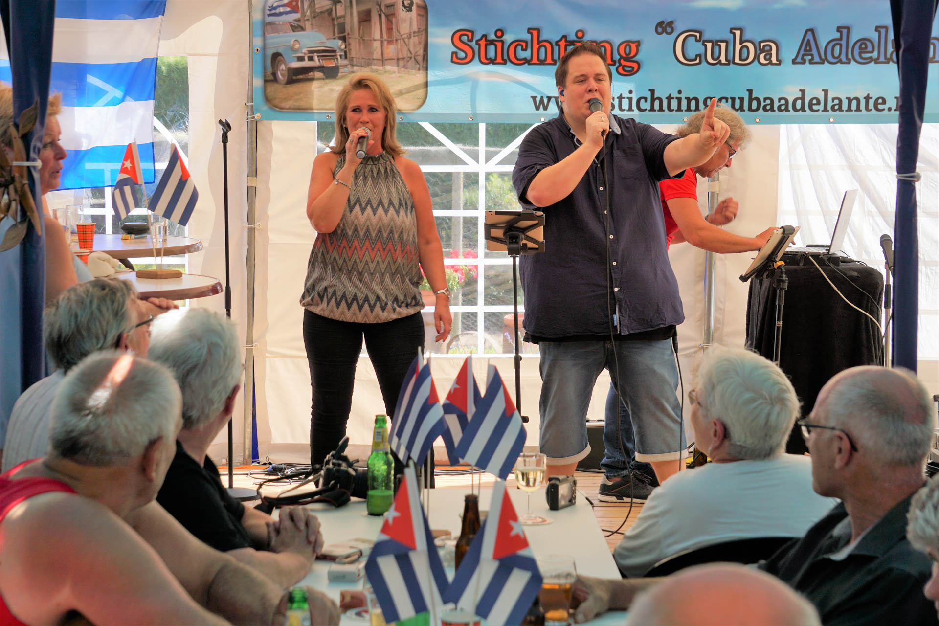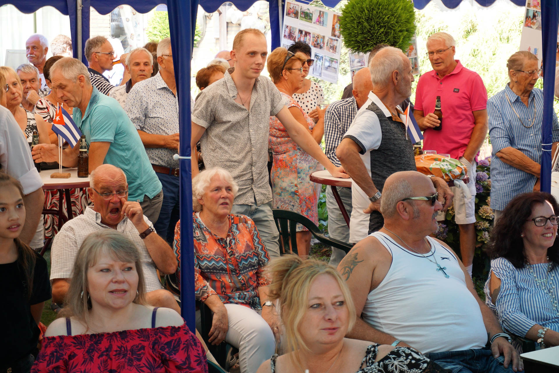 Zondag vond de muziekmiddag van Stichting Cuba Adelante plaats in Nederweert-Eind. Gelukkig was het zondag iets minder warm en de Cubaans ingerichte tenten zorgden tevens voor de nodige schaduw. Er waren foto’s te bekijken van het stichtingswerk van stichting Cuba Adelante van het afgelopen jaar. Kees Plat & Friends bestaat uit allemaal doorgewinterde artiesten met veel ervaring. De groep bestaat uit Kees Plat, Eric Baghuis, Mark van Veen, Gerrie en Ron, Frankie Stardust en Sonja Onderstal. Mark van Veen begon de middag voor 14.00 uur want er waren al veel bezoekers in de tent. Iedere 20 minuten werd er gewisseld van artiest wat zorgde voor een zeer afwisselend aanbod. De mensen genoten volop van de muziek en het warme weer zorgde voor een goede omzet bij de bar.