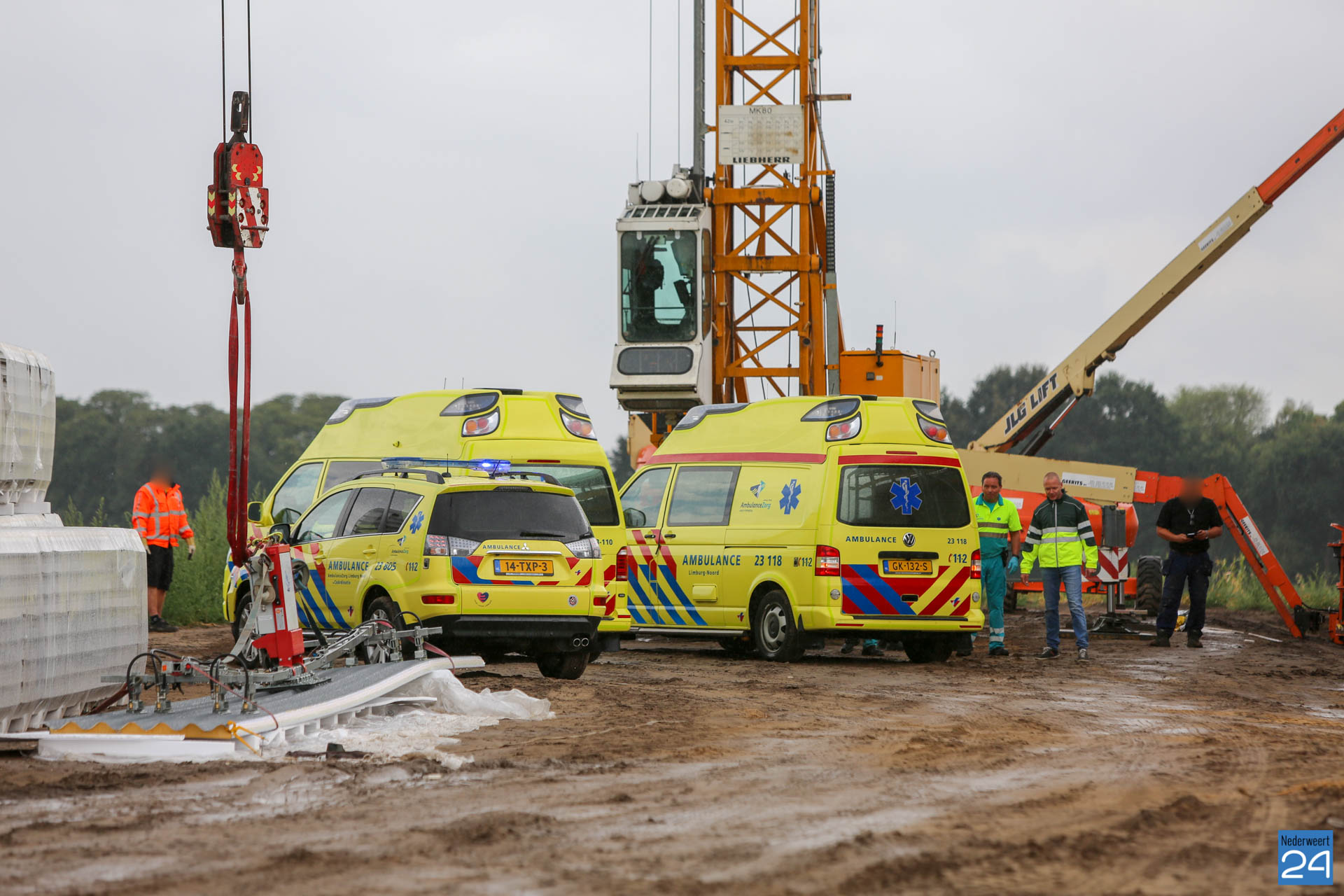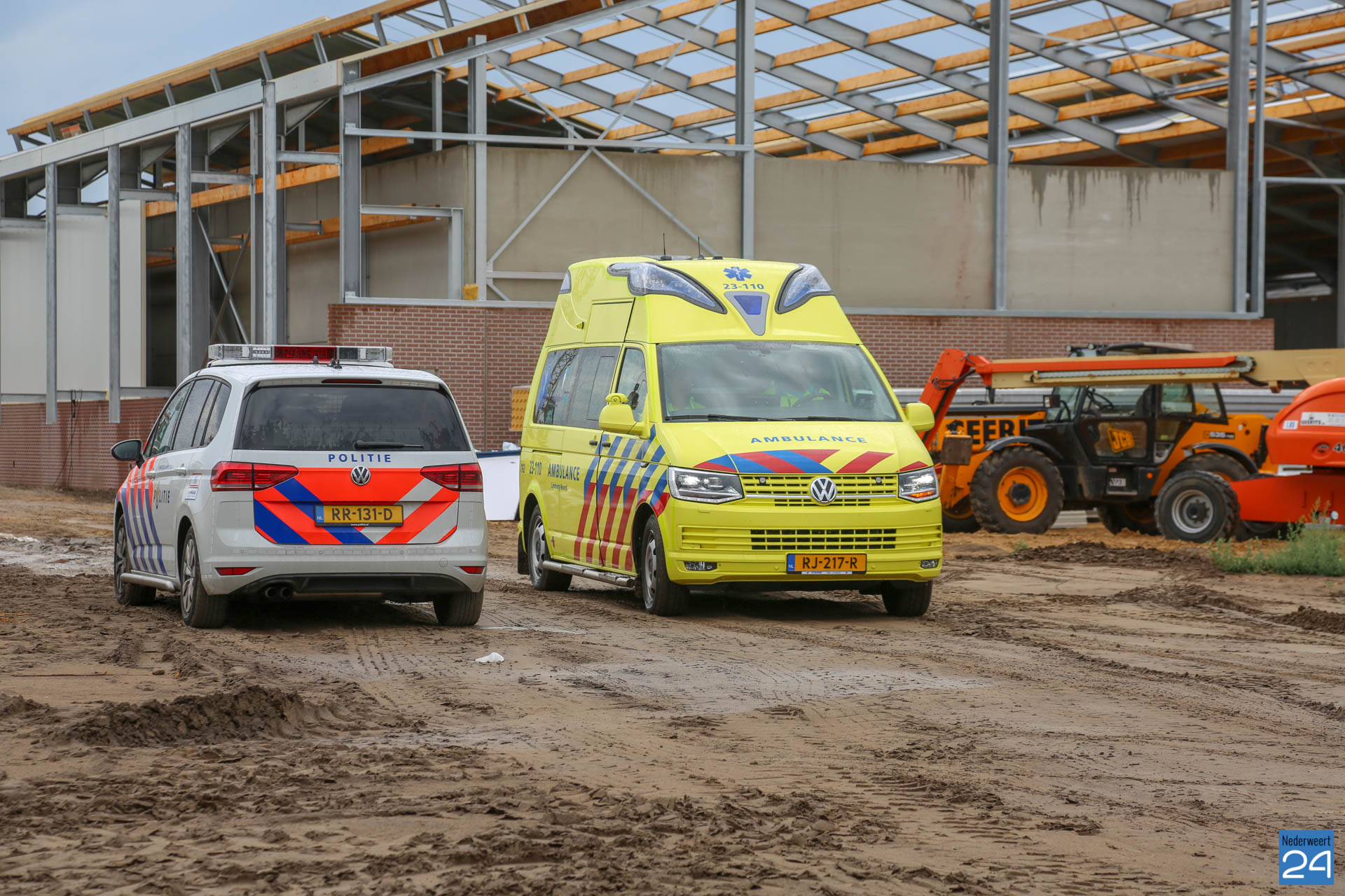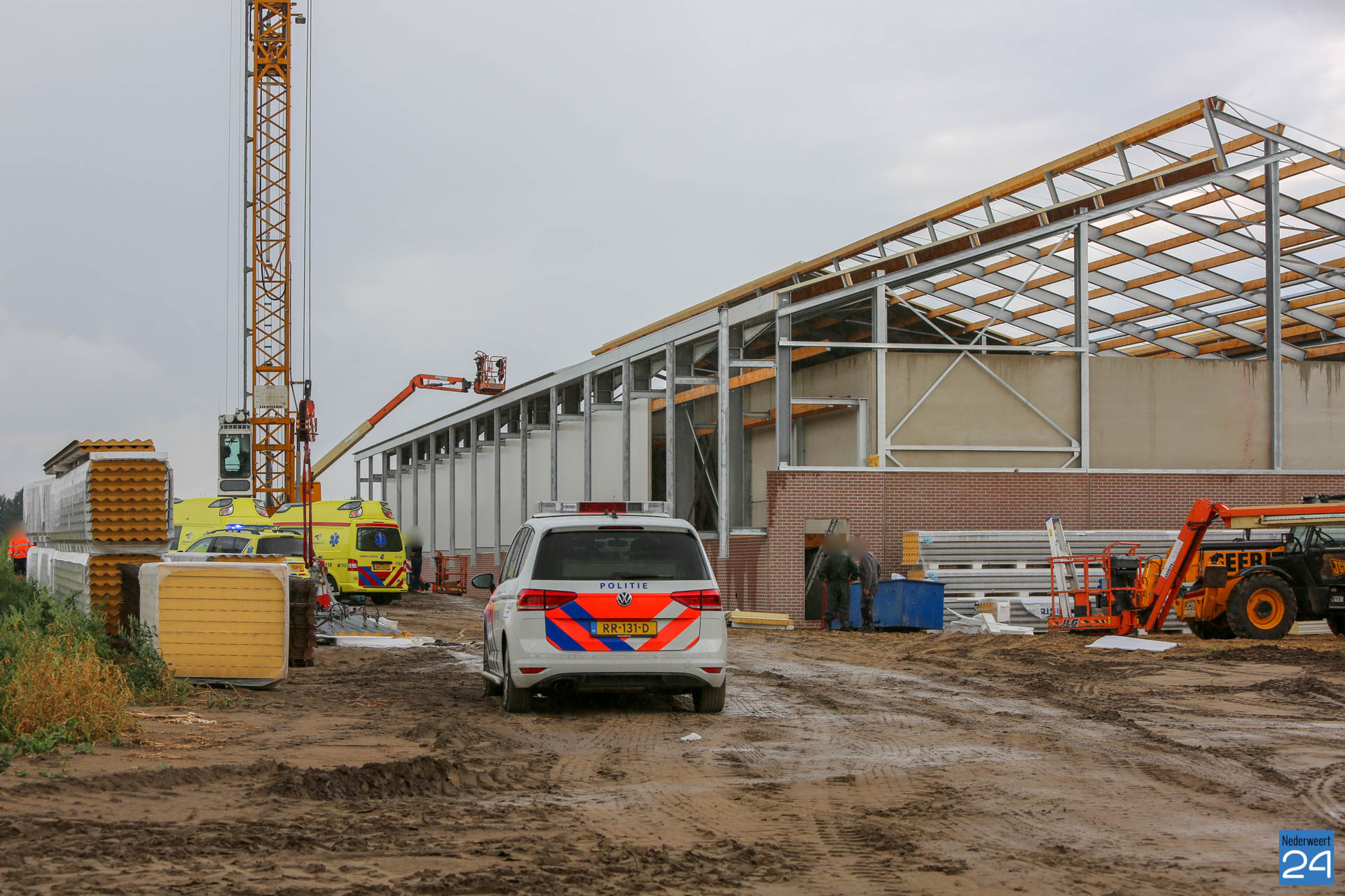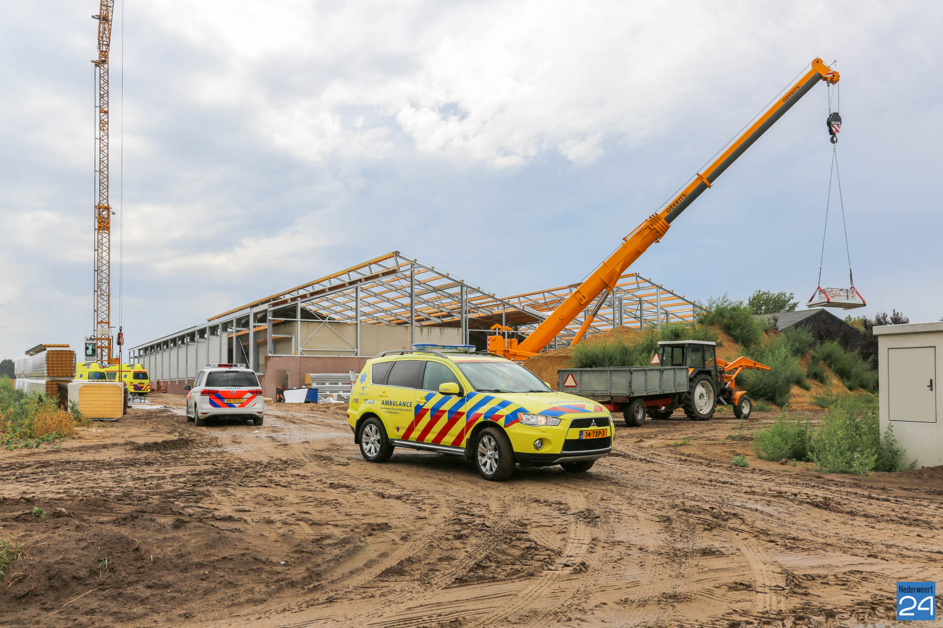 De persoon is met onbekend letsel overgebracht naar het ziekenhuis. Op het terrein worden stallen gebouwd. Inmiddels is het werk weer hervat.