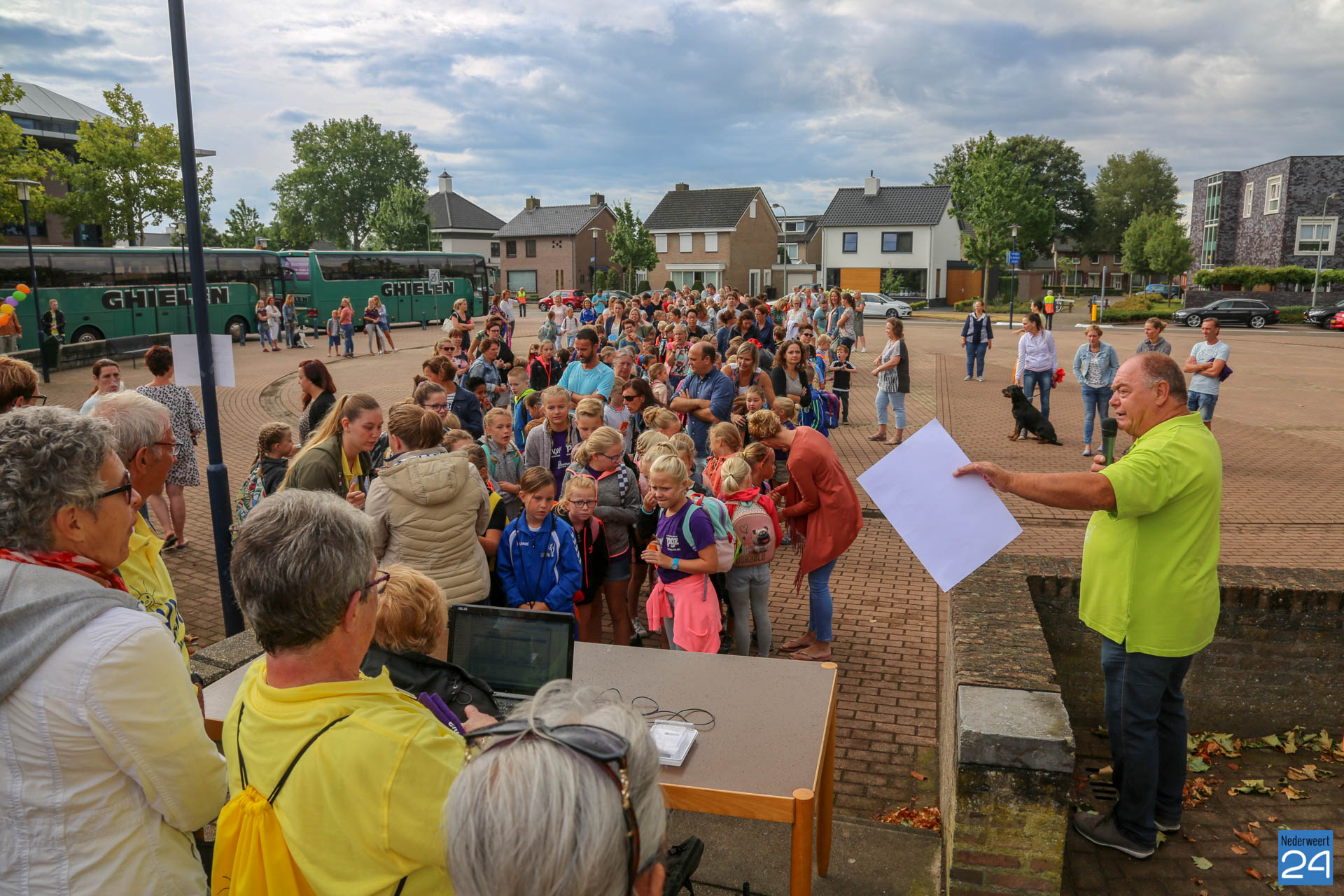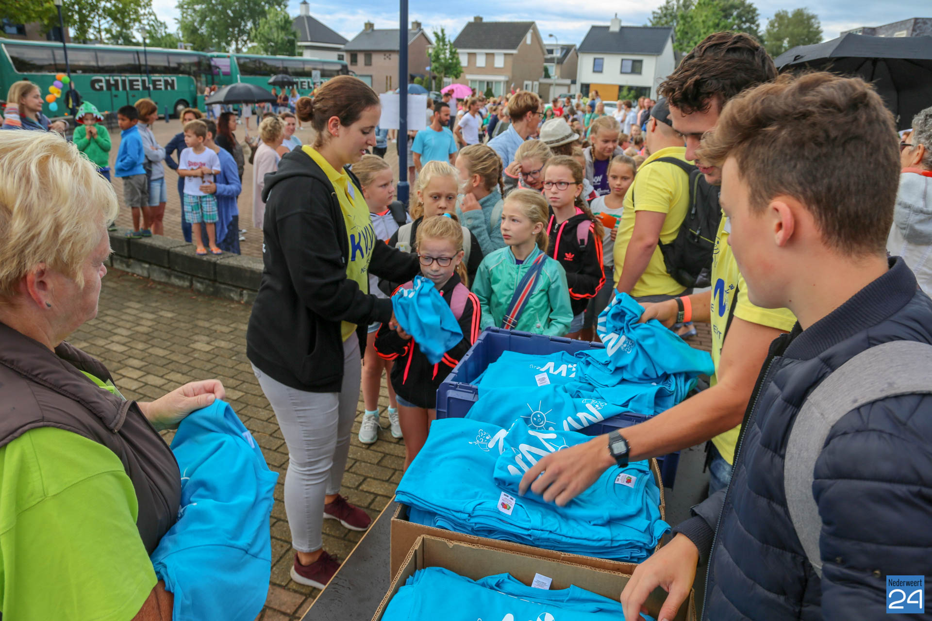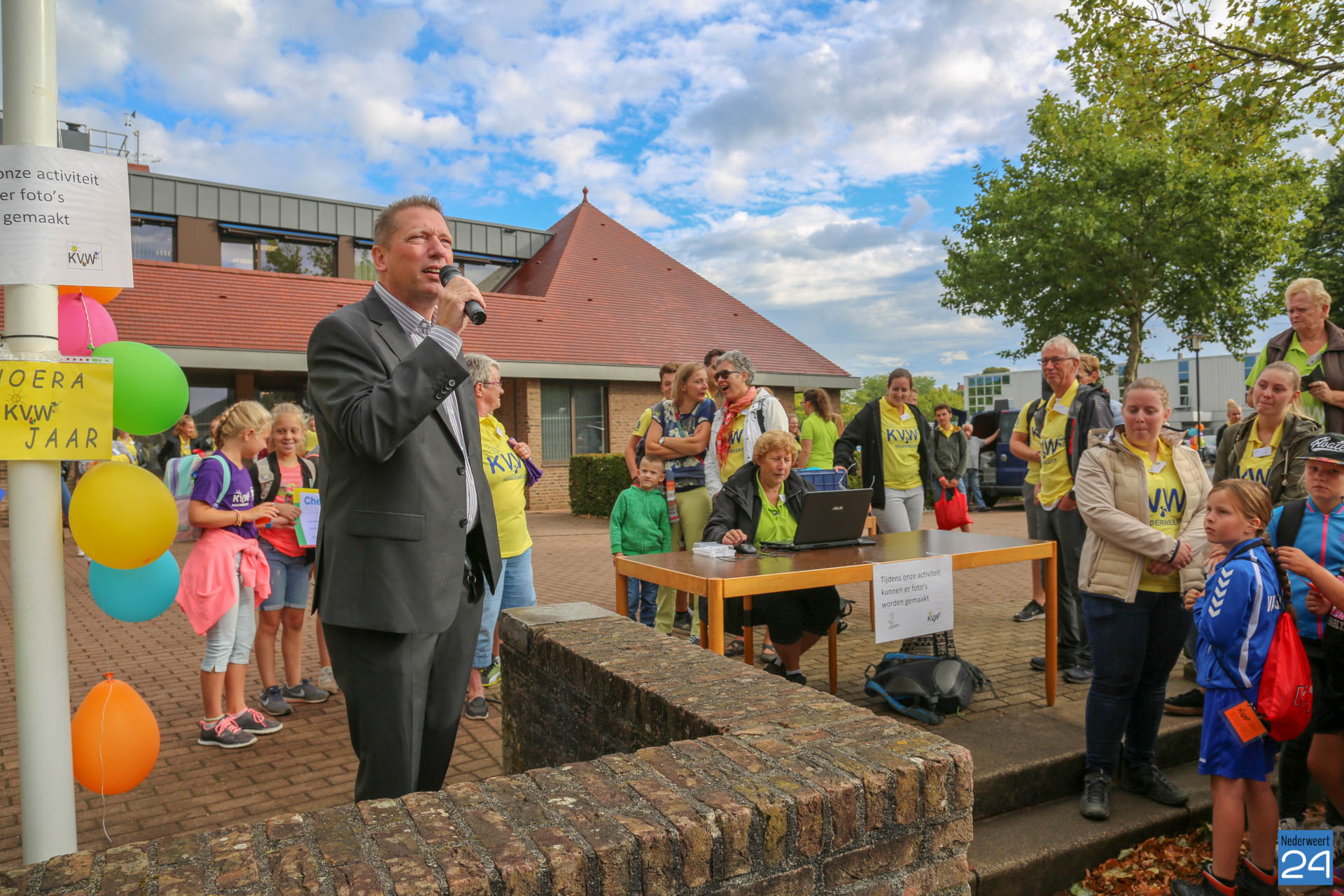 Maandagochtend is het jaarlijkse Kindervakantiewerk van start gegaan. Op het Raadhuisplein verzamelden ruim 300 kinderen zich voor de officiële opening. Dit jaar bestaat KVW Nederweert 50 jaar. Extra reden voor een feestje! Tjeu Stultiens én wethouder Peter Koolen van de gemeente Nederweert hebben de opening verzorgd. Door een deelnemende groep van de NederWeet Kwis werd een cheque overhandigd van maar liefst €200,- euro!. Tjeu Stultiens nam deze in ontvangst.