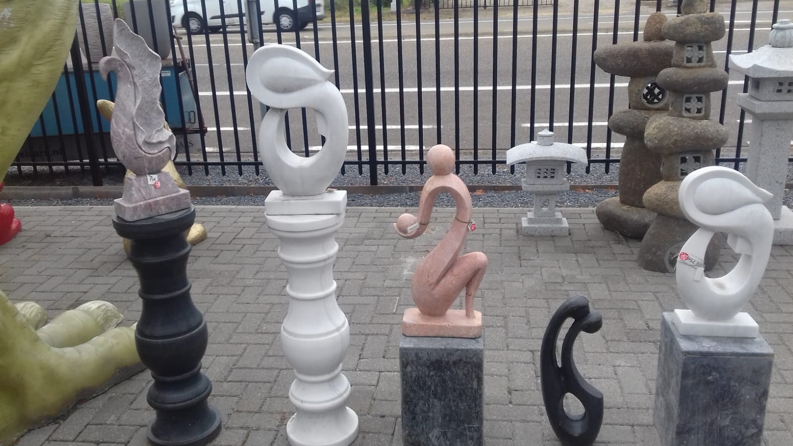 Er is weer aanvoer van veel nieuwe spullen: Aanhangers, rugzakjes voor de kinderen en leuke kinderfietsjes vanaf 29 euro. Nieuw zijn de kunstwerken van graniet en marmer.