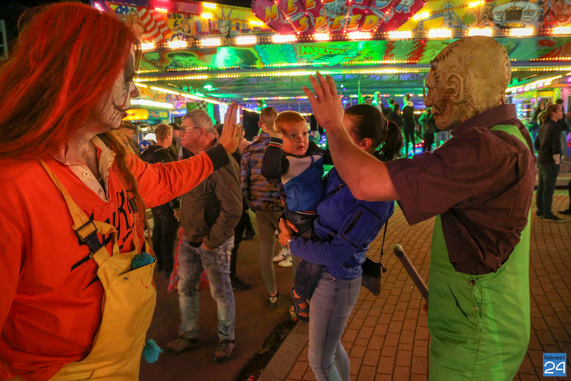 De kermis in Nederweert is vrijdagavond van start gegaan met een Fright Night en Euroavond. Geheimzinnige wezens bezochten de kermis om de bezoekers de stuipen op het lijf jagen. Dat lukte regelmatig! Er heerste vrijdagavond een gezellige sfeer en de attracties zaten goed vol.