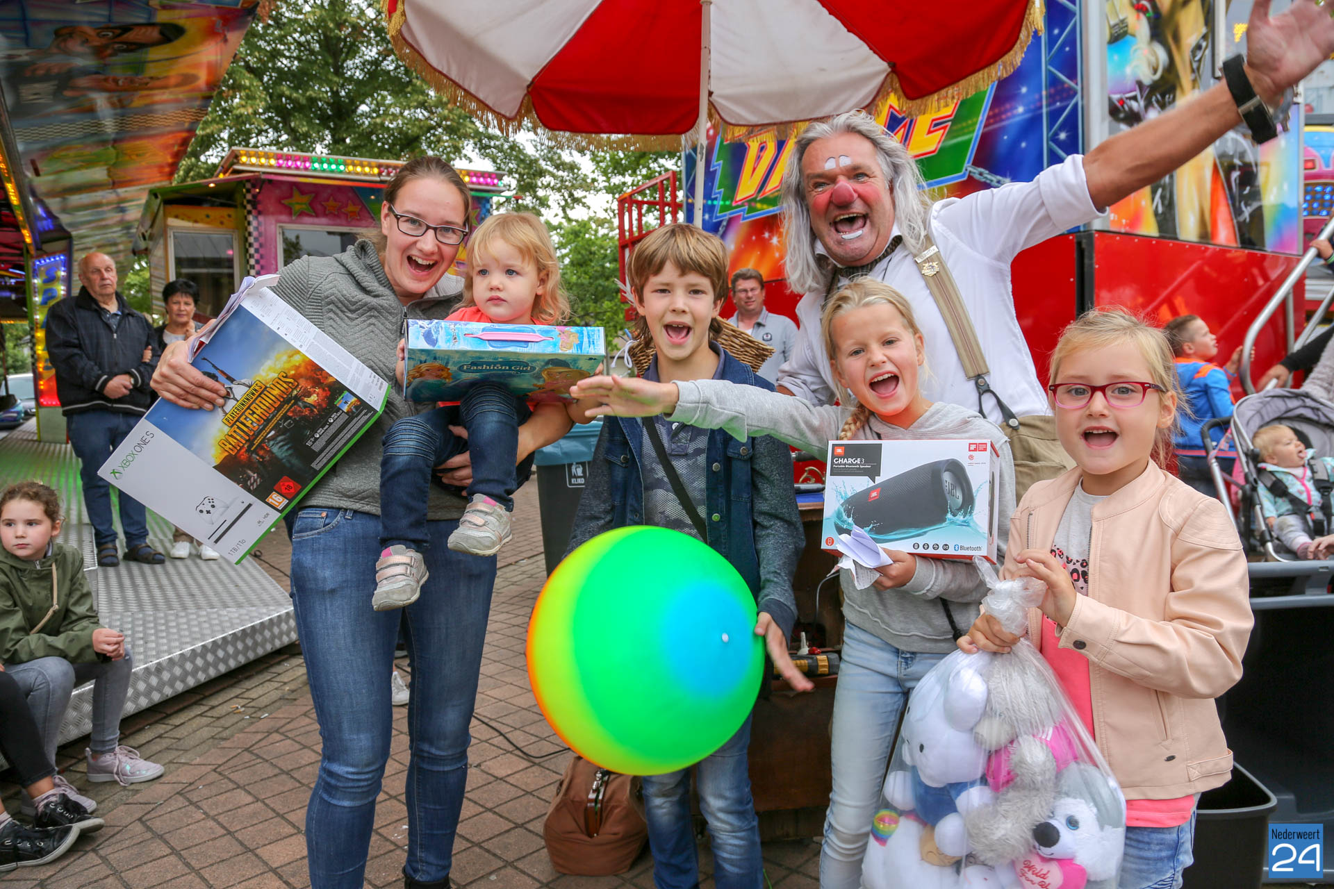 Maandagavond vond de uitreiking van de kinderloterij plaats op de kermis in Nederweert. Een grote groep kids kwam samen met hun mama’s en papa’s naar de botsauto’s voor het spannende moment. De prijzen werden uitgereikt door kermisclown Des Alles.