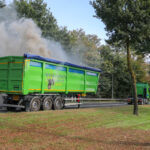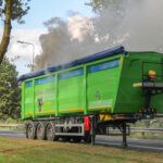 De oplegger was geladen met oud ijzer en elektromotoren. De oorzaak van de brand is niet bekend. De oplegger was net nieuw en voorzien van een camerasysteem. “Toen ik bij de rotonde reed zag ik op mijn scherm dat er rook in de bak vrijkwam. Daarop ben ik direct gestopt en heb afgekoppeld. Omstanders hebben de brandweer voor me gebeld“.